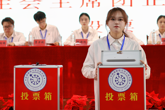 5月25日下午3时第二次全体会议第一阶段在学术报告厅召开,由张文主持,工作人员宣读修订的《西南财经大学天府学院学生会章程》条例,根据《西南财经大学天府学院第六次学生代表大会选举办法》,经全体代表酝酿和主席团会议审议,共确定了西南财经大学天府学院第六届学生委员会设执行主席1名,主席团成员2名,委员20人,按照学生代表委员会候选人等额选举办法,设候选人为20名。代表们按流程有序对西南财经大学天府学院第六届学生会主席团正式候选人进行投票。