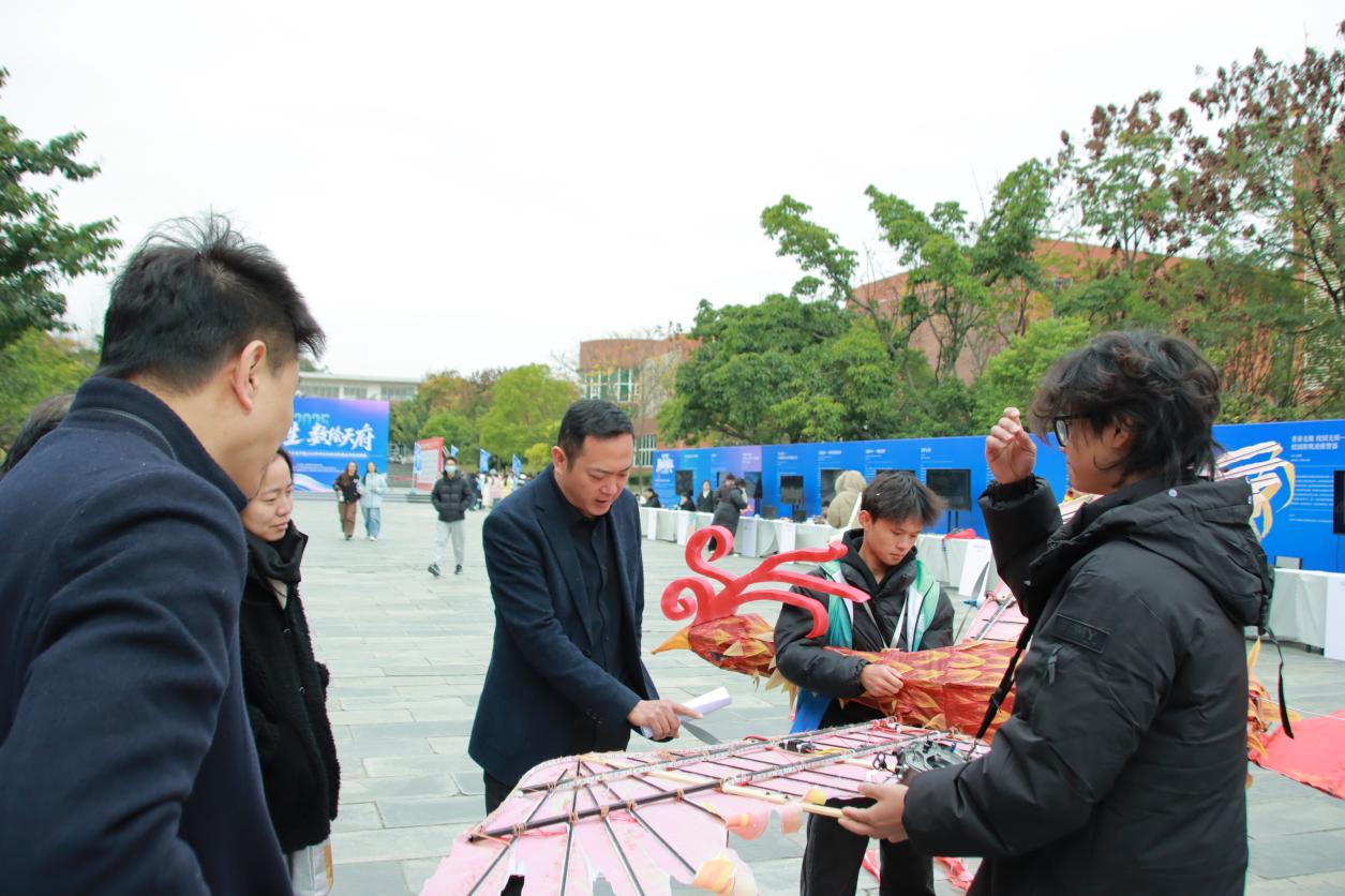 11月18日,西南财经大学天府学院绵阳校区光华广场上科技氛围浓厚、创意涌动——“AI共生 数绘天府”2025年第六届天府科技文化节暨2025年学生科技创新基金项目成果展在这里拉开序幕。此次活动由西南财经大学天府学院主办,学校智能科技学院和四川传统文化研究中心承办,西南科技大学制造科学与工程学院、绵阳师范学院人工智能学院、绵阳市非物质文化遗产保护中心以及绵阳市天府科技云服务中心共同协办,旨在深化产教融合,展示人工智能技术与多领域融合的创新成果,为全校师生带来一场科技与文化的盛宴。