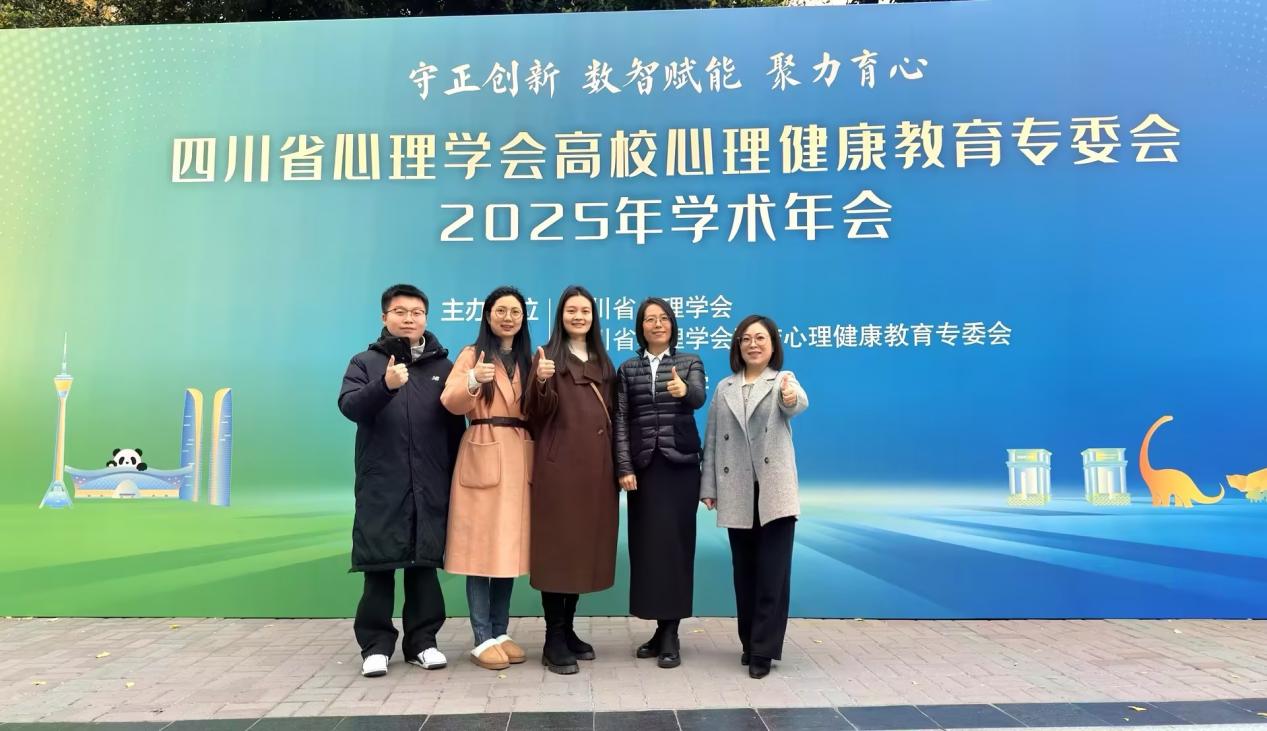 12月3日至6日,2025年四川省心理学会高校心理健康教育专委会学术年会在成都理工大学顺利召开,全省高校心理健康教育工作者参会。学校党委学生工作部心理健康教育中心教师黄丹、邓文静、邱长江参会,工程与材料学院分党委副书记陈思遐、康养护理学院辅导员孙德红应邀作优秀论文报告。