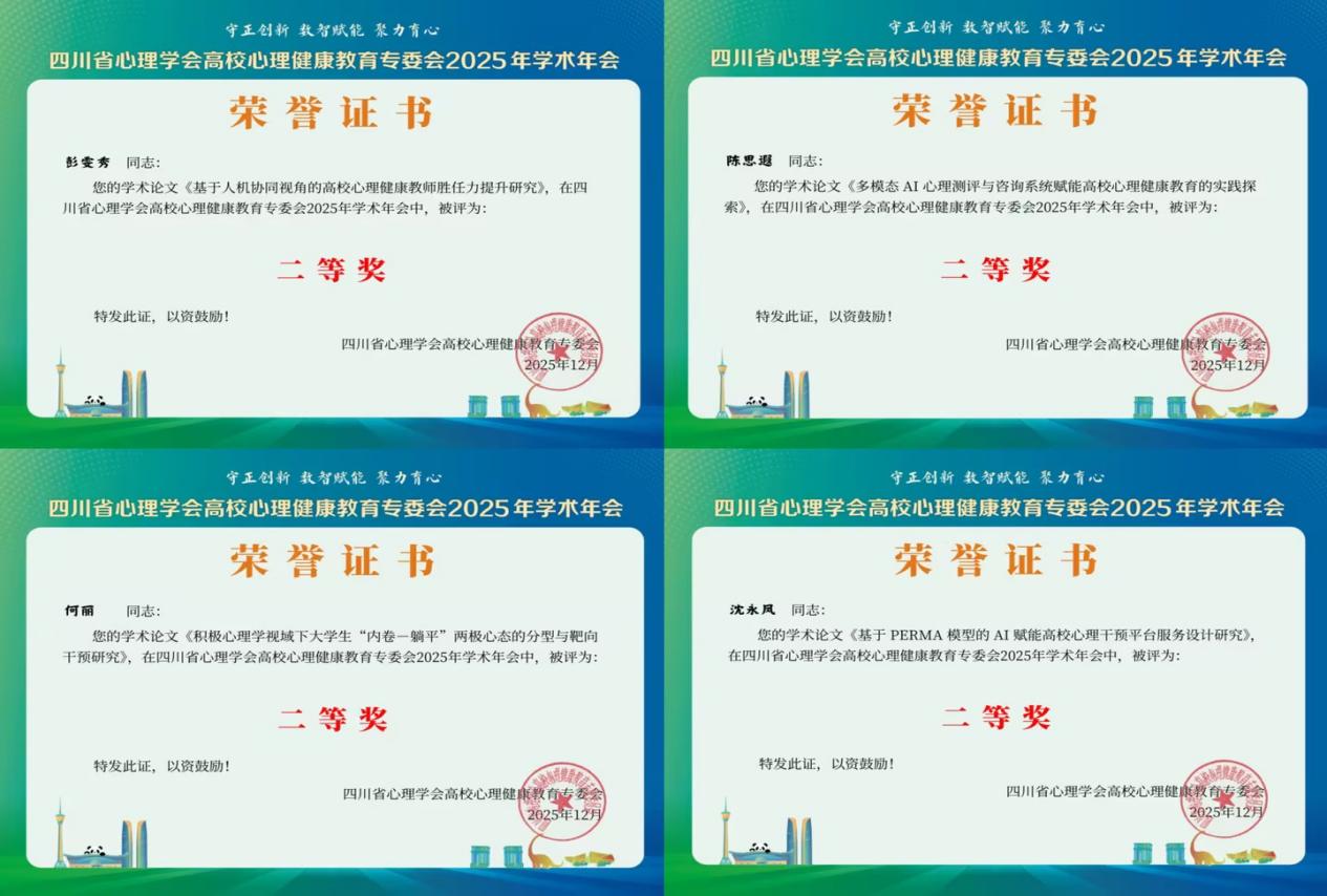 在年会闭幕仪式上,专委会对2024-2025年四川省普通高校心理健康教育先进集体和先进工作者进行了表彰。学校心理健康教育中心教师黄丹凭借在心理育人工作中的突出表现,荣获“先进工作者”表彰。