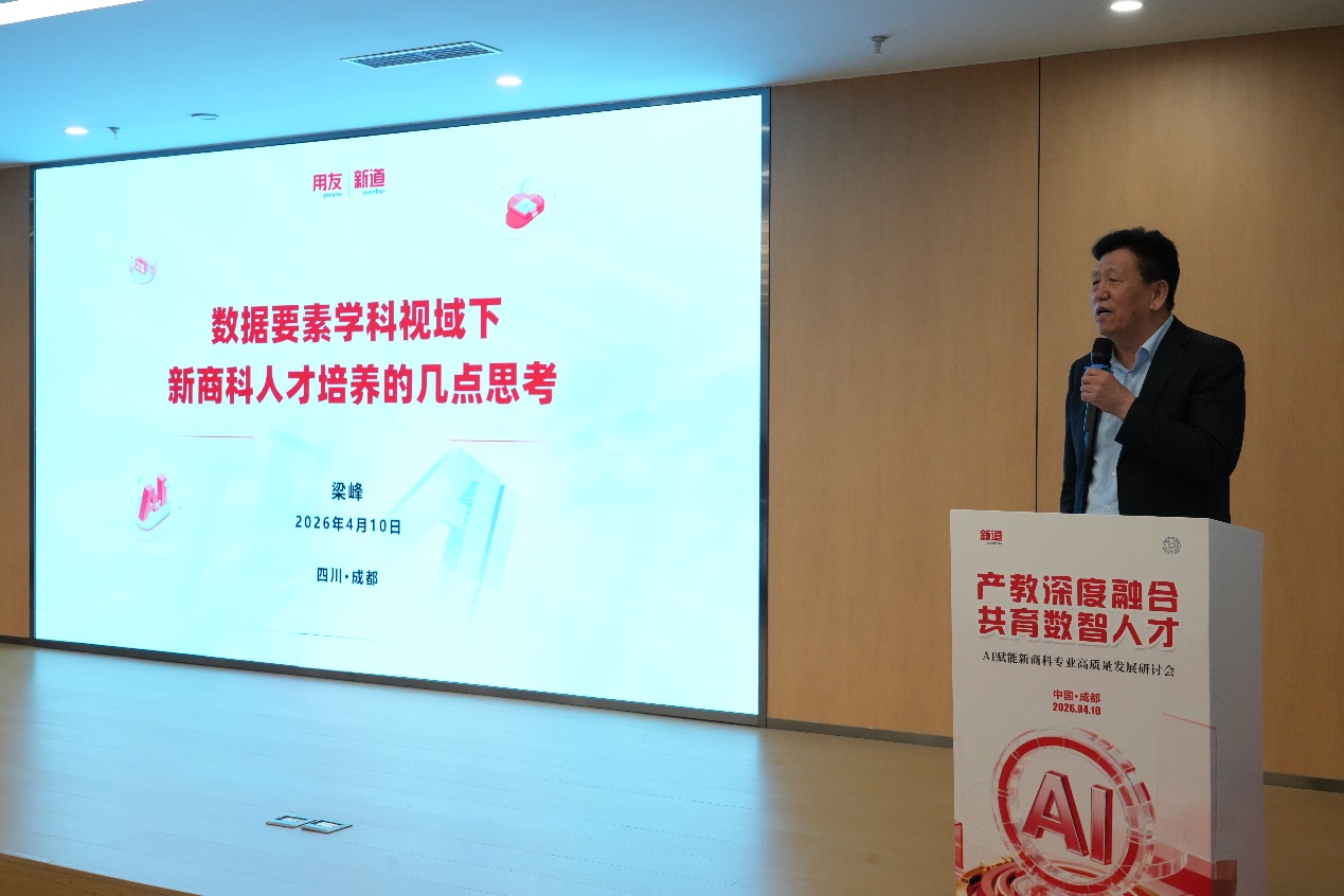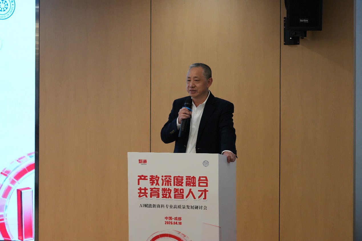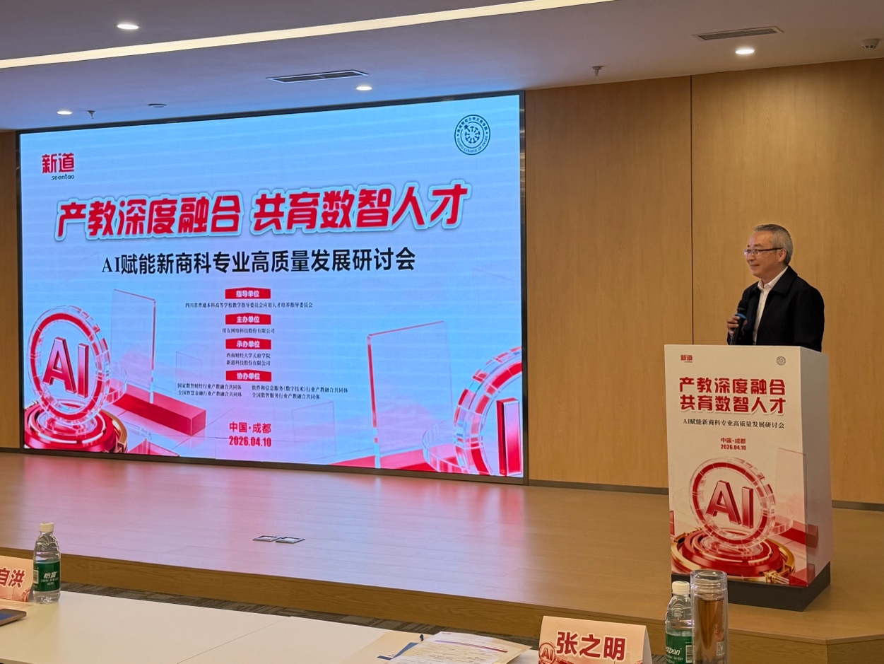 4月10日下午,由四川省普通本科高等学校教学指导委员会应用人才培养指导委员会指导,用友网络科技股份有限公司主办,西南财经大学天府学院与新道科技股份有限公司共同承办的“产教深度融合 共育数智人才——AI赋能新商科专业高质量发展研讨会”在成都顺利举行。本次会议围绕人工智能背景下新商科专业转型与人才培养展开,吸引了来自川渝两地高校、企业及行业的专家学者与业界代表齐聚一堂,共同探讨AI赋能教育变革与产教协同育人新路径。