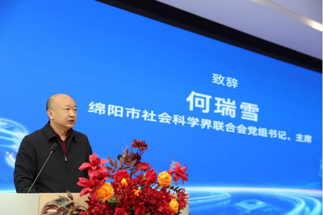 ▲绵阳市社会科学界联合会党组书记、主席何瑞雪致辞