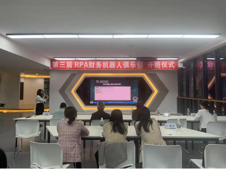 活动最后,陈语宣介绍了RPA财务机器人俱乐部的发展前景、历届学生的学习成果、此次培训学习内容和开班之后的学习方向,分享了目前俱乐部搭建的RPA财务机器人与审计机器人学习平台和师资团队,讲解了俱乐部以赛促学、产教融合的特点,描绘了俱乐部打造专用实验室、开展学习交流活动的短期目标,充分调动了与会人员的热情,获得师生们的积极反馈。