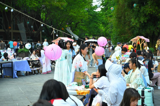 本次游园会于下午四点半正式开始,除了主活动集市,还包括射虎、射礼、蹴鞠、连珠、斗百草、临书、贴花钿、投壶、剪纸九个子活动。每个子活动参与成功即可找对应的工作人员进行打卡,成功打卡五个子活动即可视为成功参与本次游园会,成功打卡九个子活动则可凭门票及一卡通到入口处兑换精美小礼品。本次集市活动,同学们进行线上申请摊位,在活动当天摆摊进行物品售卖。所售物品包含同学们的闲置用品及手工制品,以做到物尽其能,充分利用资源,倡导勤俭朴素的生活方式的同时,推进校园文明建设。