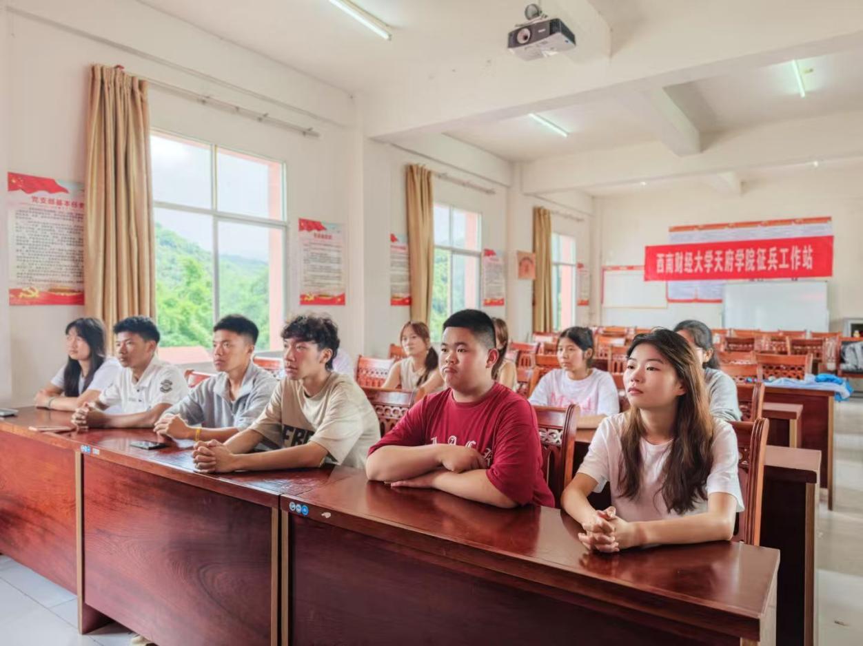 为深化国防教育实效,创新征兵宣传形式,近日,西南财经大学天府学院征兵工作站(成都校区)依托暑期“三下乡”社会实践平台,组织成员赴云南省德宏傣族景颇族自治州盈江县开展主题征兵宣传活动。由站长谭帅阳带队,联合部干事李昂易、退伍士兵张颖婷等成员参与。