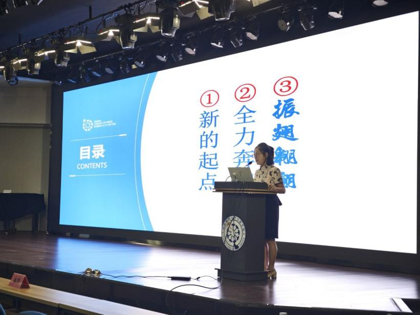 活动伊始,陈思遐首先代表学院向新生表示欢迎,并围绕学校办学理念、发展历程以及学院学科建设、师资力量、教学资源等基本情况作了系统介绍,帮助同学们尽快熟悉校园环境、融入本科阶段学习。在“全力奔跑”环节,陈思遐重点讲解了校纪校规、第二课堂管理制度、综合测评办法以及学生表彰奖励政策等内容,引导同学们严守纪律、积极参与课外实践,全面提升综合素质。她强调,规范的校园行为与多元的能力发展是成长为高素质应用型人才的重要基础。