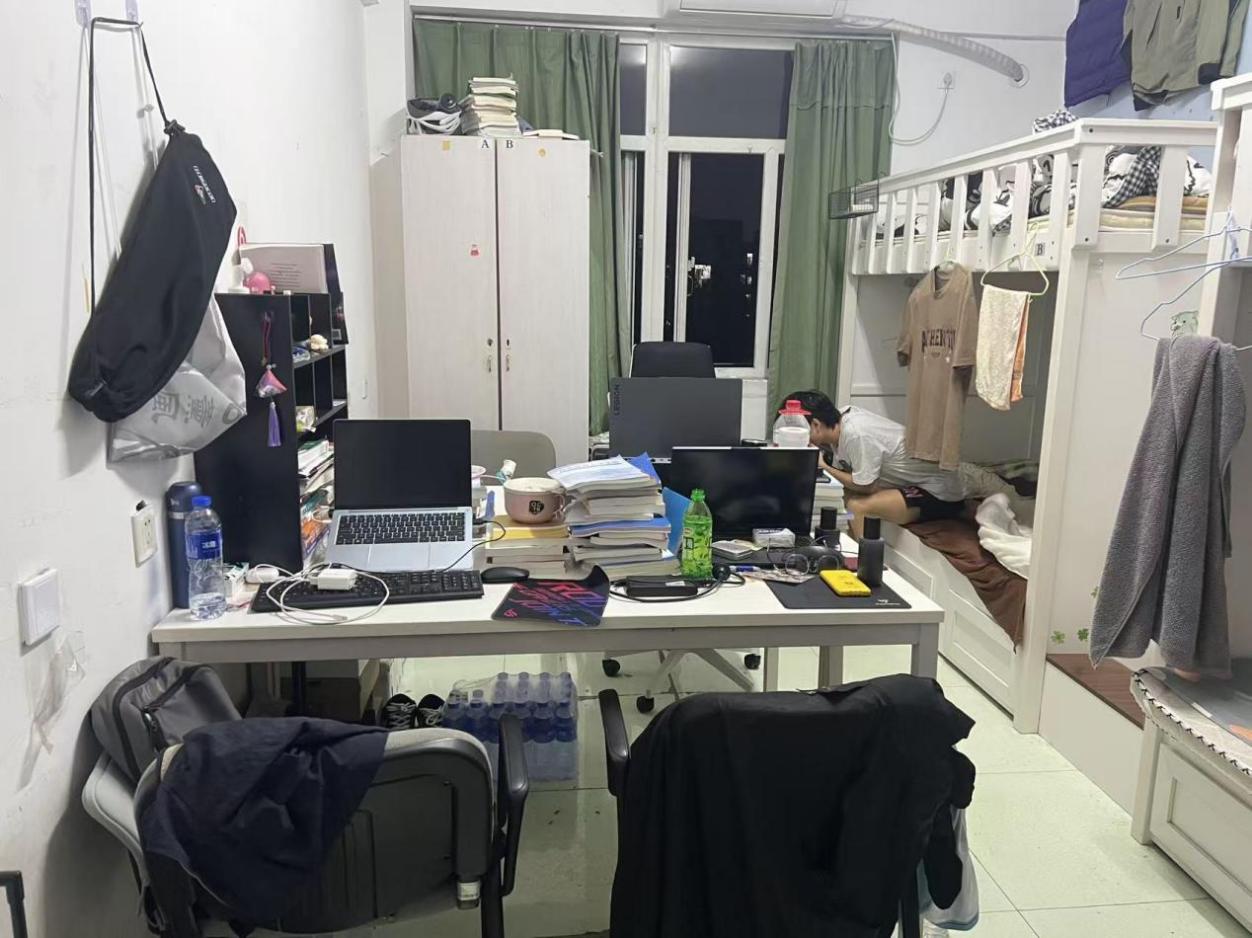 查寝期间,李锐与卢鹏飞带队深入各新生宿舍,对寝室卫生状况、用电安全规范及公共物品摆放秩序开展细致检查,重点排查可能影响新生居住安全与生活保障的潜在问题,确保宿舍管理要求落到实处。在走访某寝室时,检查组发现同学们创新性地将公用课桌改造为 “学习共享角”:区域内不仅有序陈列学习资料与文具,更通过合理规划实现空间高效利用,既满足了集体学习需求,也营造出温馨的集体生活氛围。这一设计充分彰显新生的协作意识与创新能力,李锐对此给予高度肯定,明确提出可将该创意在新生宿舍范围内推广,为更多学子打造优质居住与学习环境提供参考。