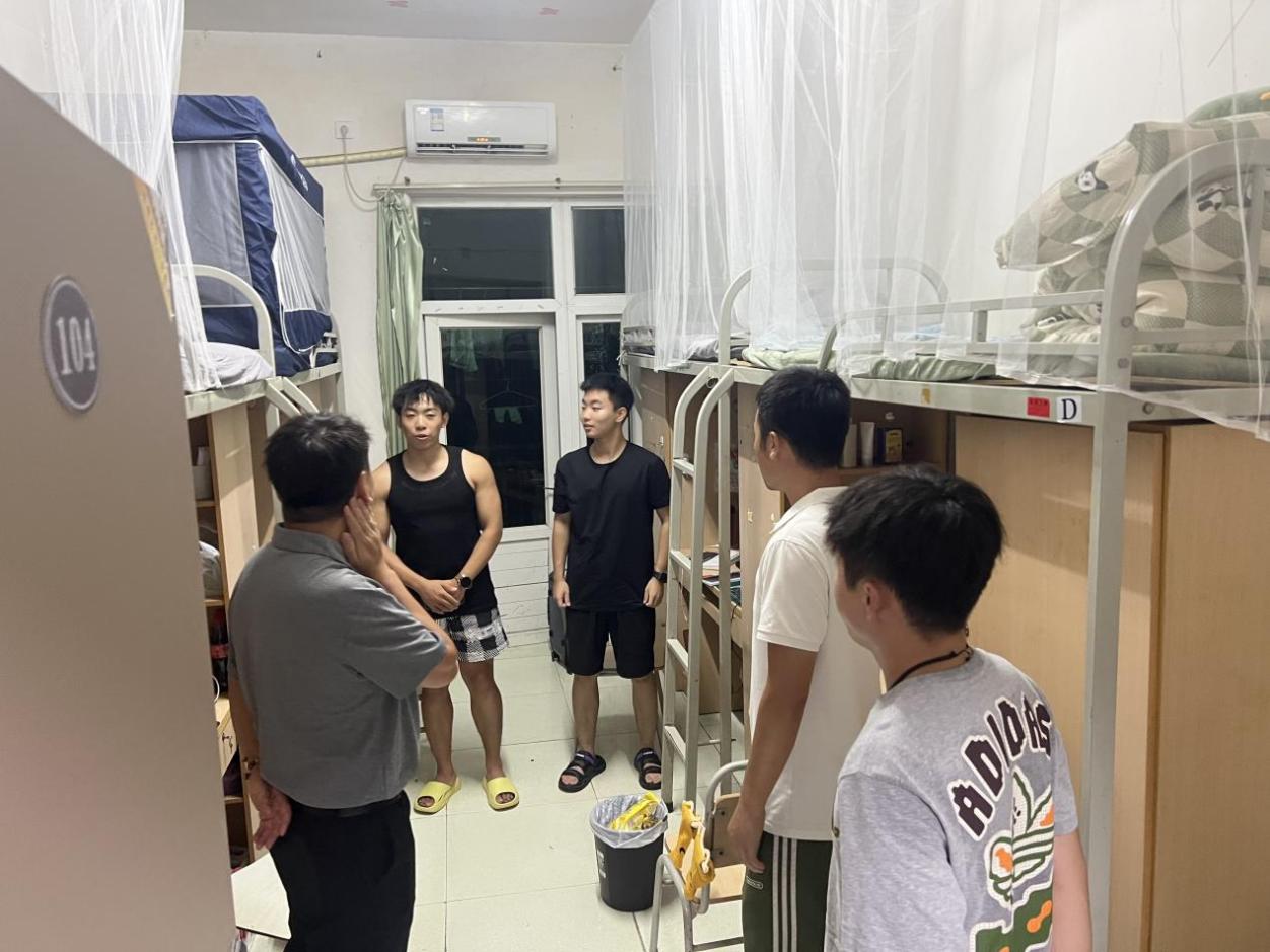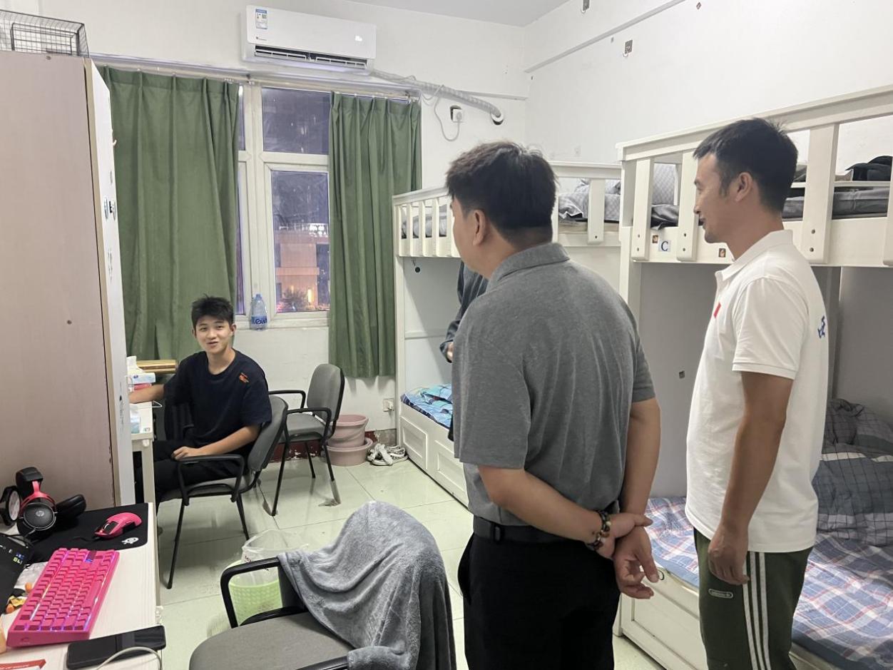 为深入了解新生入学适应情况,进一步加强宿舍安全管理,9月7日晚,校长助理李锐与体育学院副院长卢鹏飞以及大一至大四各年级辅导员一同走访大一新生寝室,开展了一场严谨而温暖的查寝活动。他们不仅细致检查了宿舍安全设施,还与新生亲切交流,为初入校园的学子送去温暖的关怀与实用的指导。