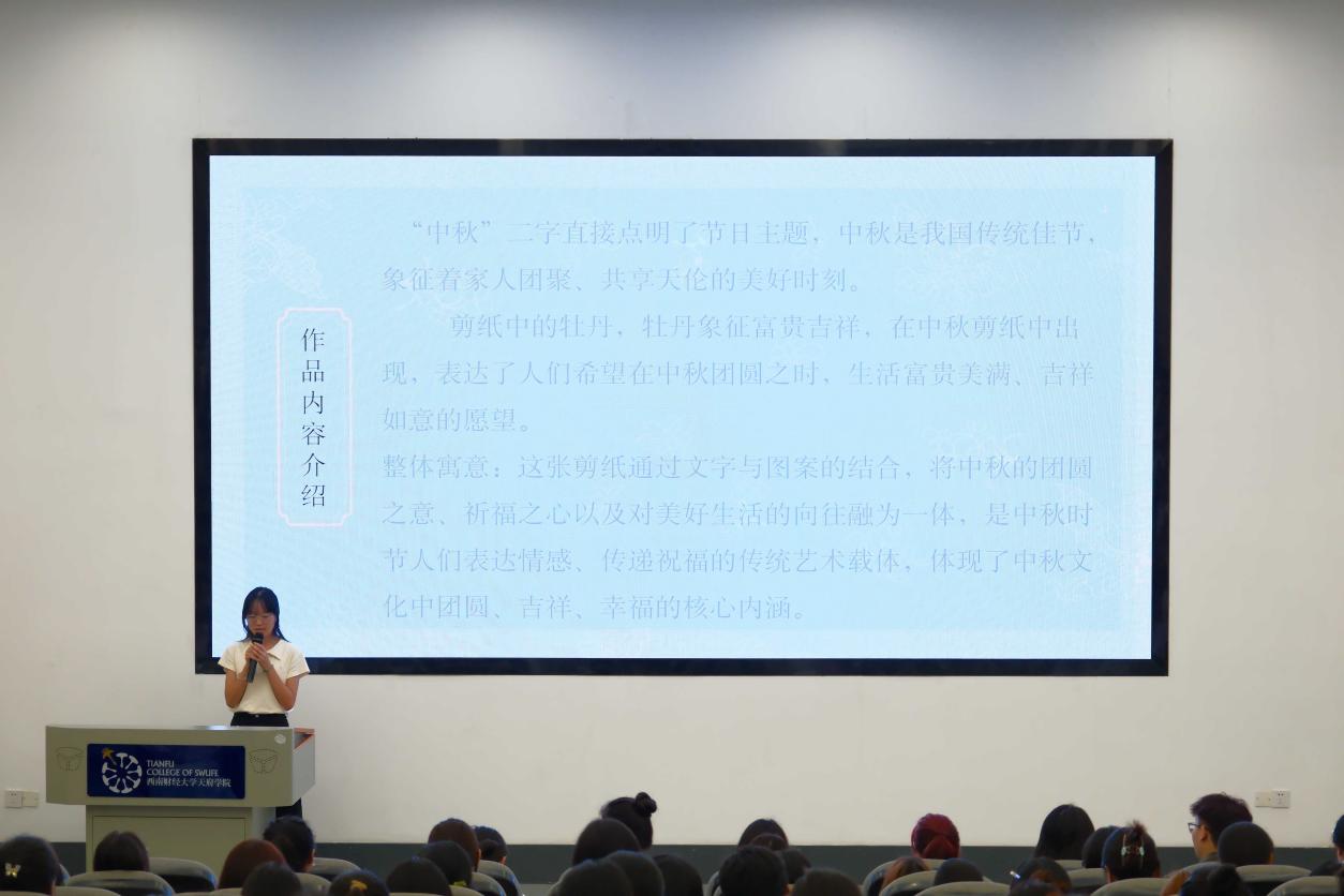 金秋送爽,月满中天。为弘扬中华优秀传统文化,丰富校园文化生活,10月9日,西南财经大学天府学院德阳校区第二学生社区在B101教室举行“月满中秋,共叙团圆”中秋节创作大赛决赛。康养护理学院团总支、学生会指导老师担任评委,与入围选手、观赛学生共同定格中秋文化记忆。