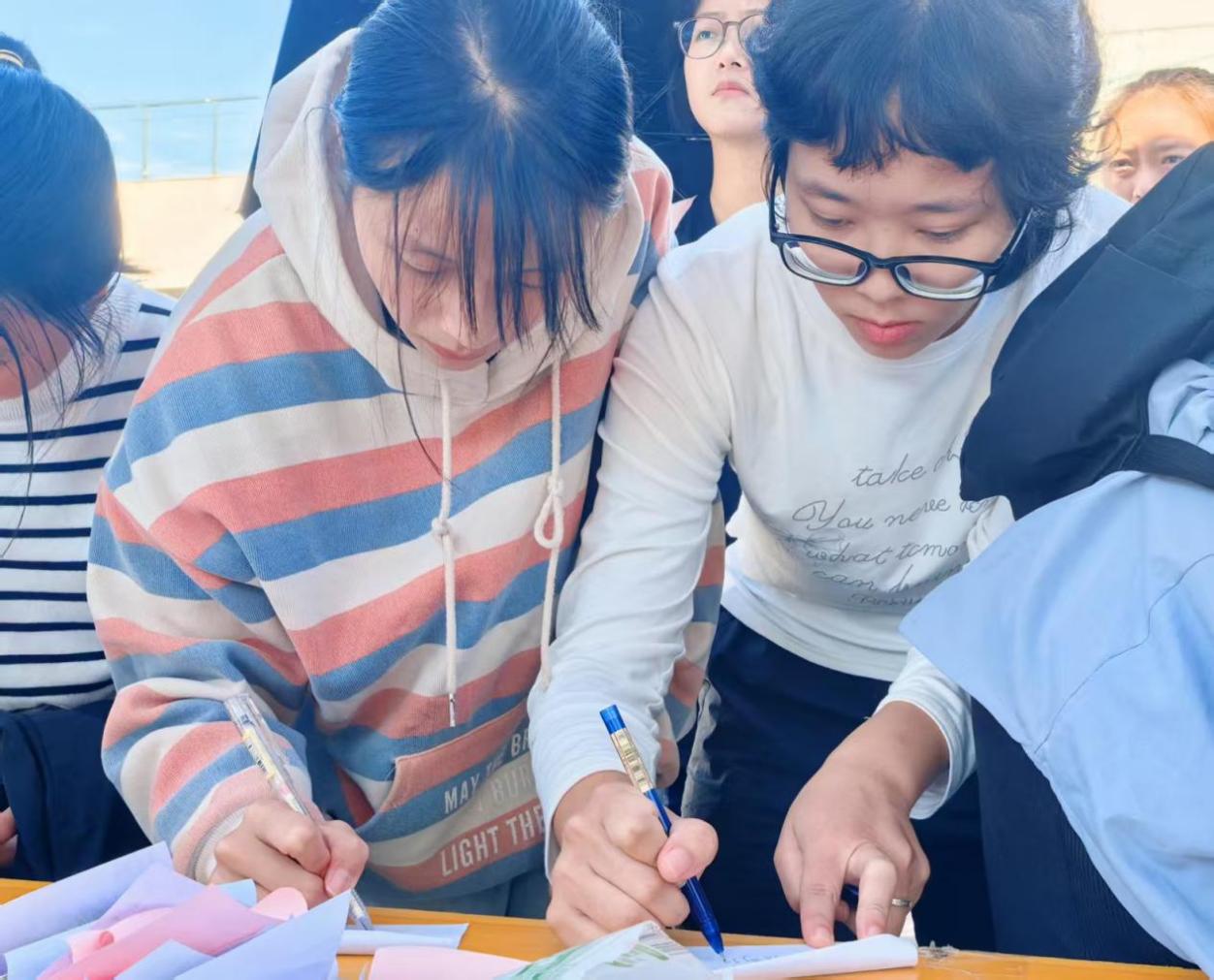 活动以“让历史可触可感”为核心,设“辛亥英雄叙事会”与“历史与卫生跨界沙龙” 两大环节。“辛亥英雄叙事会”现场,泛着旧时光印记的黑白照片静静陈列——有孙中山宣讲革命理想的坚毅身影,有黄兴带伤指挥武昌起义的热血画面,也有秋瑾联络志士的飒爽模样。同学们抽取照片后,或激昂讲孙中山“屡败屡战”的共和信念,或动情提及秋瑾“休言女子非英物”的豪情,眼中闪烁的光芒让课本里的英雄褪去符号感,化作鲜活榜样,爱国情怀在分享中悄然升温。“历史与卫生跨界沙龙”以泛黄史料册为引,册中收录辛亥时期“卫生救国”文献片段:从呼吁剪辫易服的社论,到起义后防疫知识的普及记录。同学们围坐研读后,在便利贴上写下感悟:“百年前的变革,连‘清洁街巷’都藏着救国心”“‘卫生救国’到‘健康中国’,是代代接力”。每一张便利贴如跨越百年的对话,让历史纵深与当下需求相撞,辛亥精神的时代意义愈发清晰。