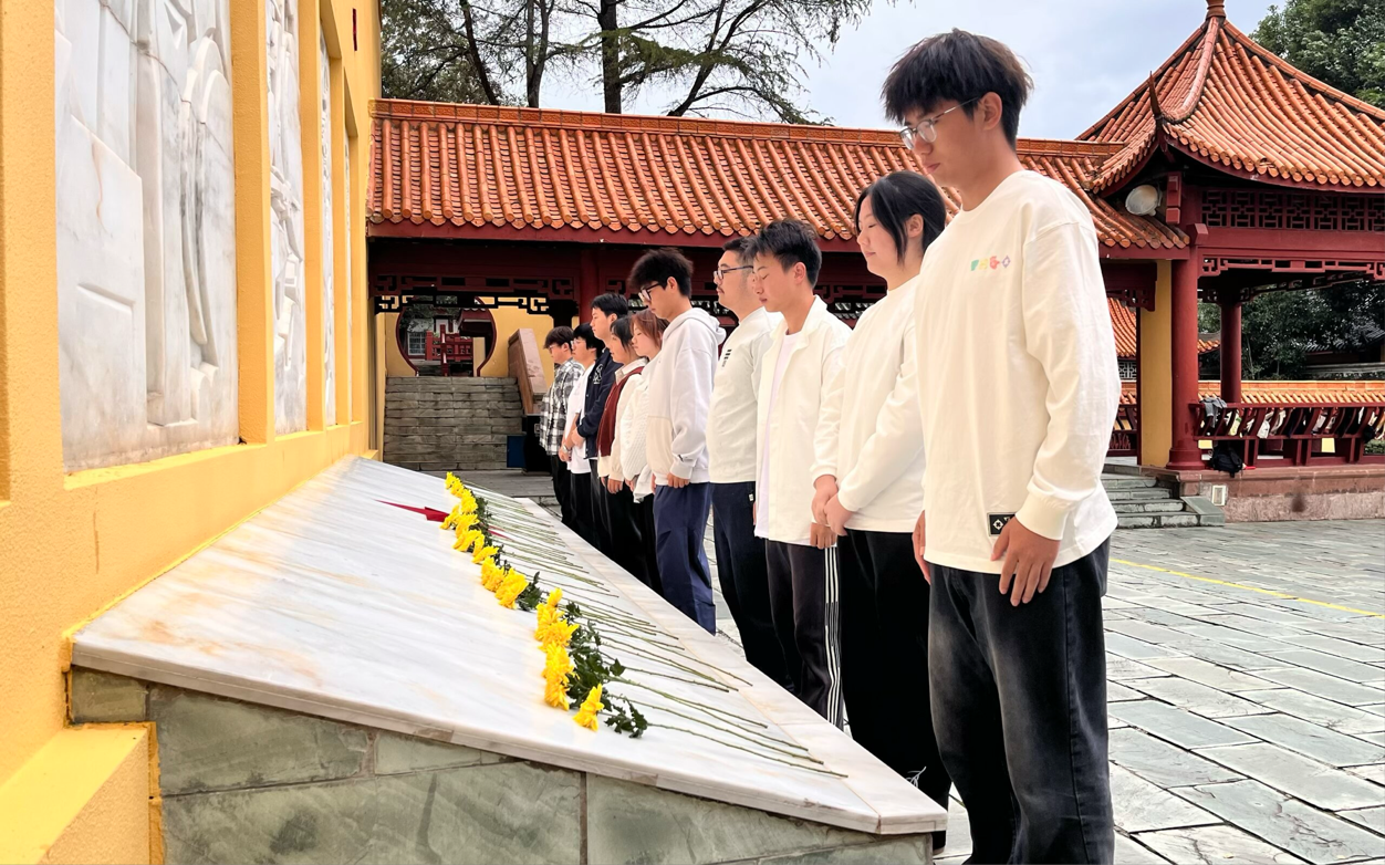 晨光熹微,会计学院师生肃立碑前。手持黄菊,列队静默,依次上前俯身、献花、鞠躬、起身。黄菊低垂,朵朵花瓣在晨光中诉说着不朽的传说;金黄的花盘,静静映照着两个时代的对话。当师生俯身献花时,这些菊花不仅构筑起连接黄继光英雄精神的纽带,更见证着意志的传承。它们既是献给烈士的永恒赞礼,更是赋予生者的精神勋章。