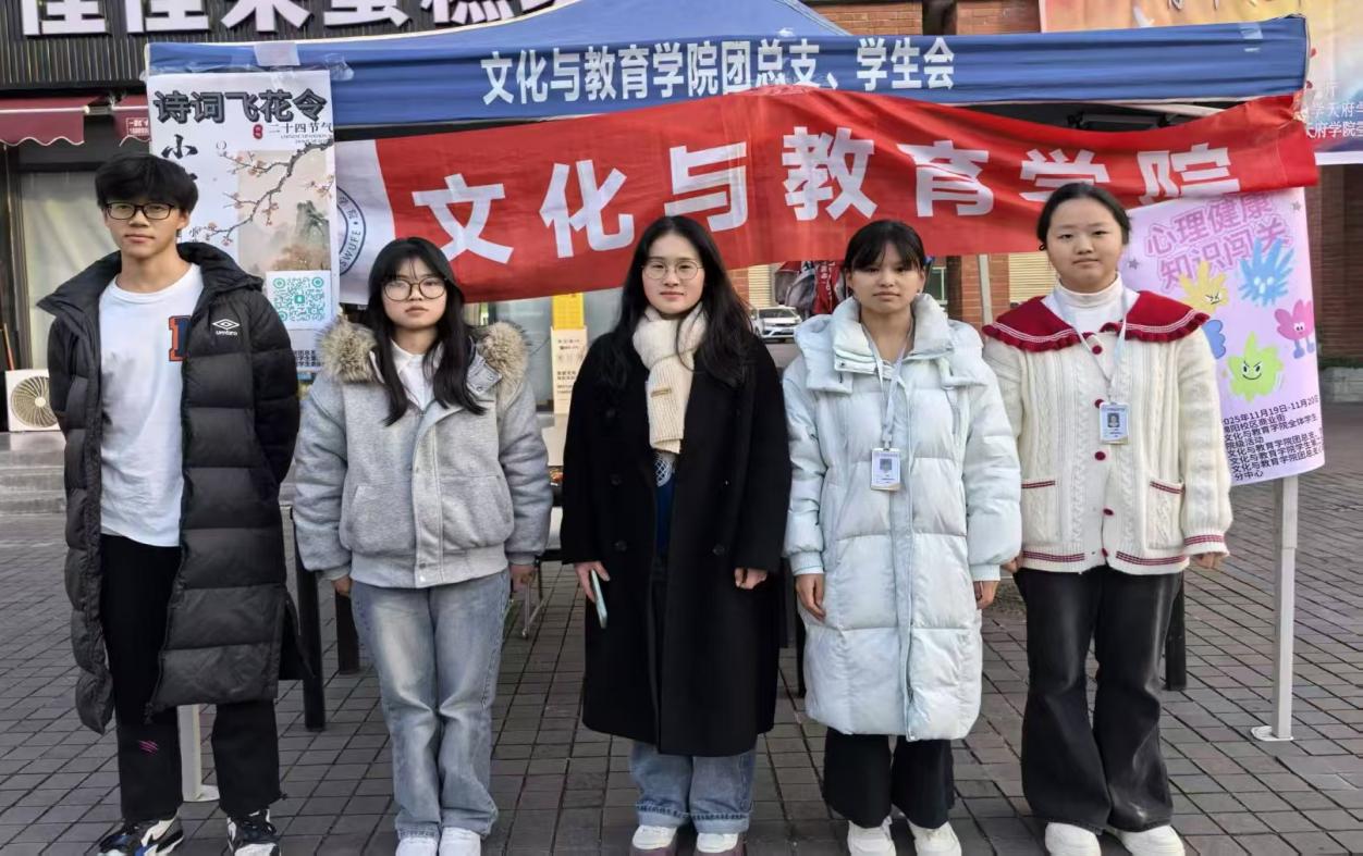 为提升学生心理健康素养,普及心理健康知识,以积极心态面对学习与生活,文化与教育学院心理素质拓展分中心携手文化与教育学院学生第二社区,于11月19日和20日在商业街顺利开展了“心理健康知识闯关”活动。本次活动面向学院全体学生,共计400名同学积极参与。