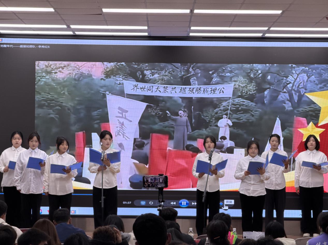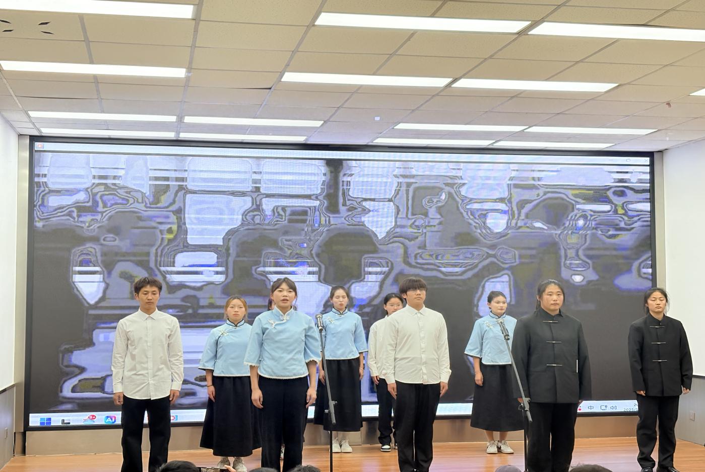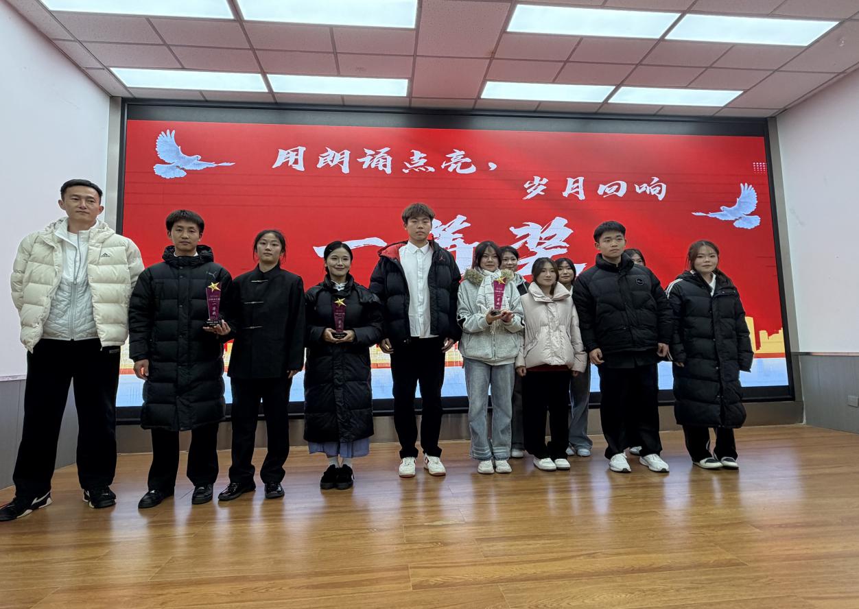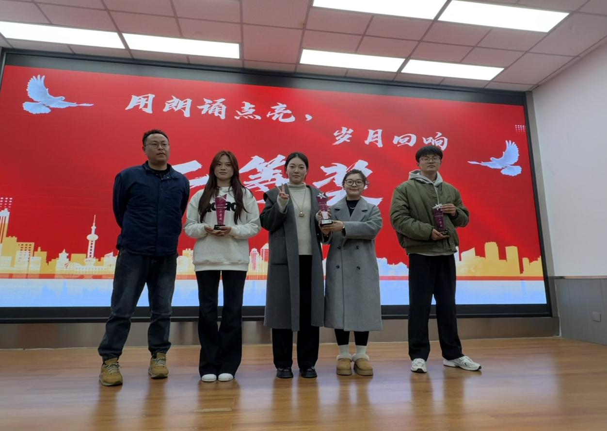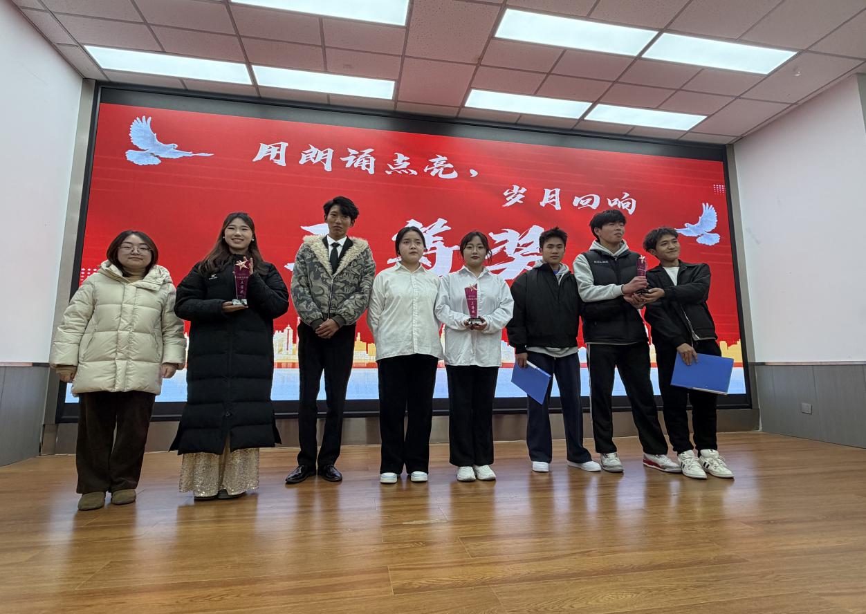 刘卓雅组用真挚的情感诠释了对华夏的挚爱;党支部团队带来《以青春之名,承百年薪火》,身着传统服饰,于水墨背景中展现青春担当。两组表演形式各异,均彰显了学子们激昂的青春风采与坚定的理想信念。经过激烈角逐,共评选出一等奖3名、二等奖3名、三等奖3名。