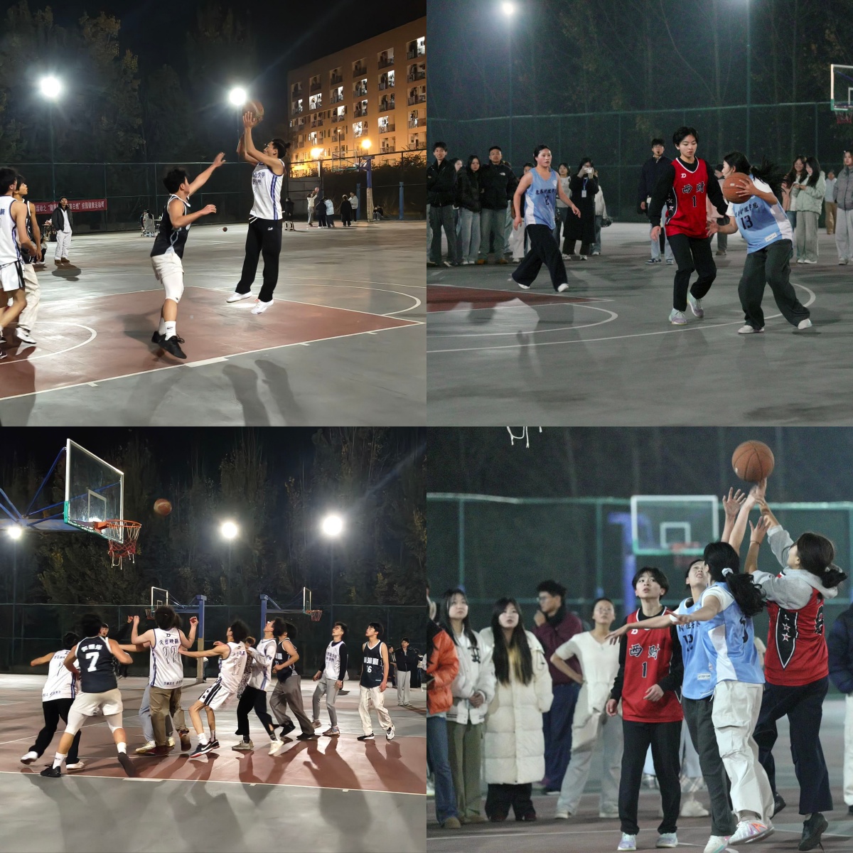 赛场上,运动员们斗志昂扬、配合默契。果断的抢断、精准的传球、矫健的跃起、沉稳的投射,每一个瞬间都凝聚着拼搏与专注。防守固若金汤,进攻锐不可当,比分在胶着中交替上升,诠释着永不放弃的体育精神。场外啦啦队呐喊助威、掌声如潮,与球场内的奔跑击球声交织成青春最美的和声。摄影团队穿梭记录,定格下一幕幕热血澎湃的精彩画面。