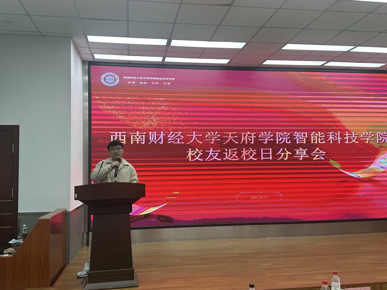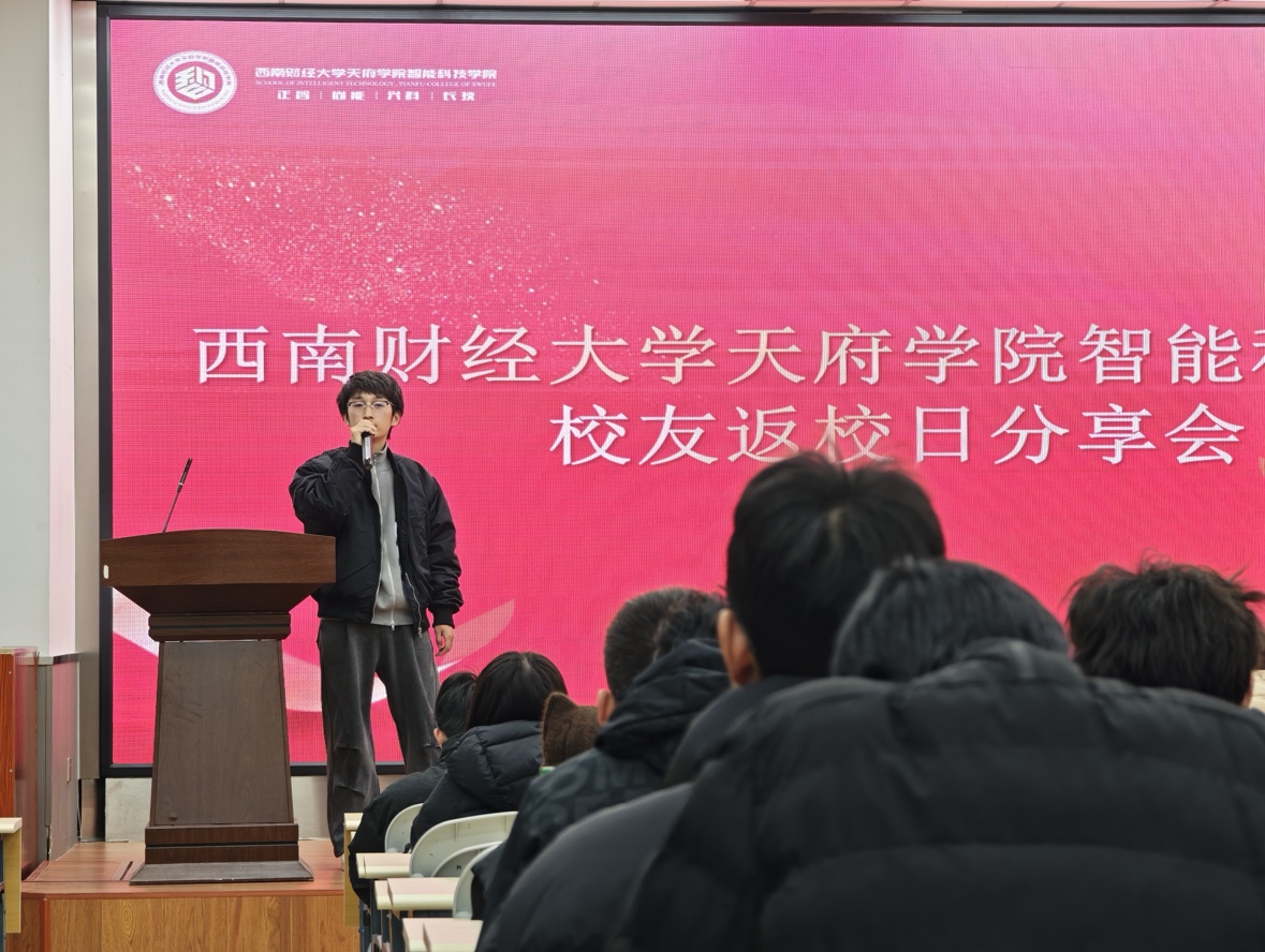 在企业运营与教育科技领域,通威股份有限公司的李明煌校友结合制造业数字化转型的行业背景,分享了信息技术在传统行业的应用场景。他以自身参与的企业数字化升级项目为例,鼓励同学们“不要局限于专业知识,要主动了解行业业务逻辑,培养技术与业务融合的思维”。四川优学智远教育科技有限公司的高子轩校友则从教育科技赛道的从业经验出发,强调沟通表达与需求分析能力的重要性:“技术最终要服务于人,学会听懂用户需求、清晰传递技术价值,是职场加分的关键。”