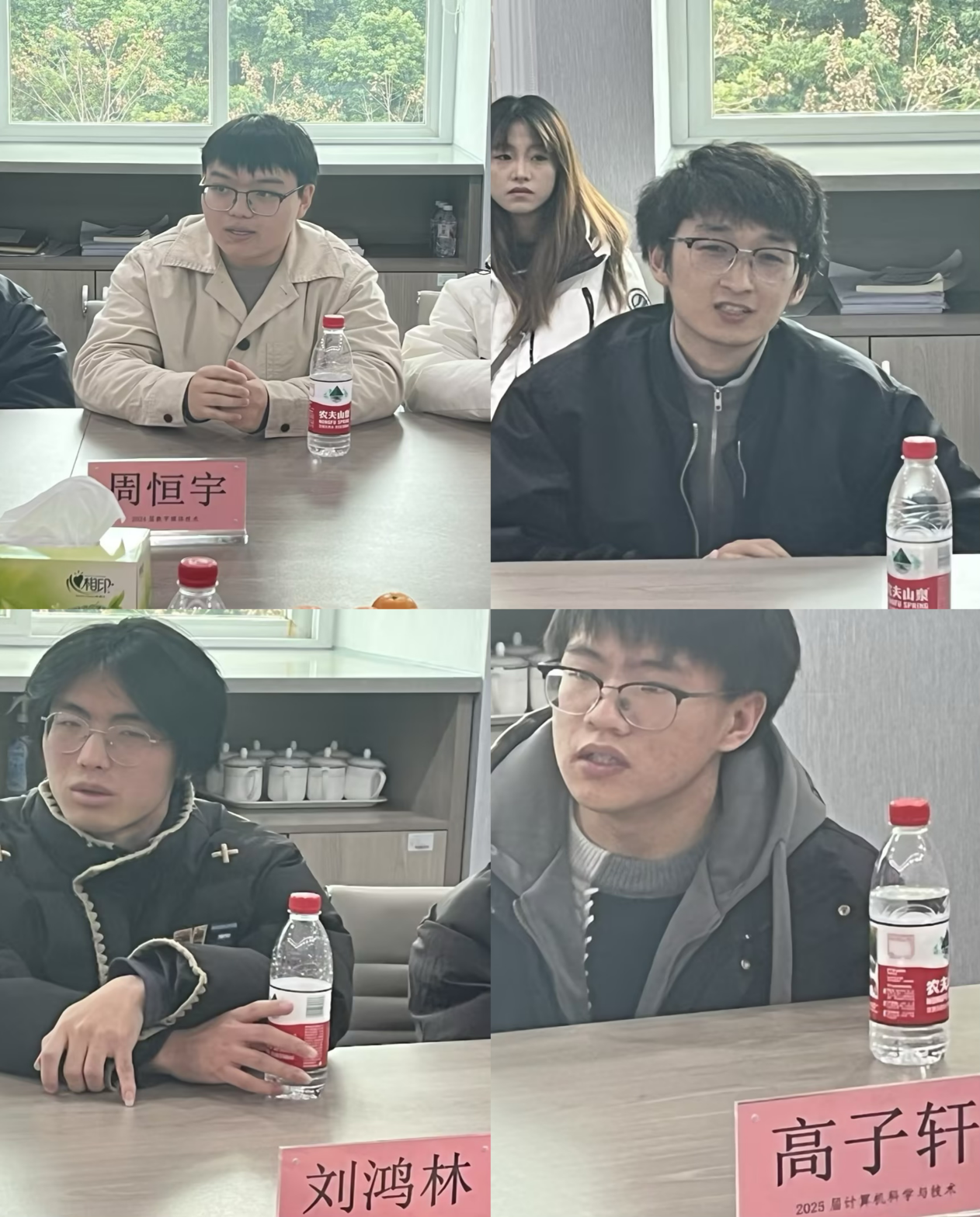 随后在交流互动环节,校友代表们结合自身职业经历与成长感悟各抒己见。万达信息股份有限公司的孙立校友分享了职场深耕经验,叮嘱学弟学妹们要扎实掌握专业技能,注重实践能力与沟通能力的双重提升;自主创业的周恒宇校友结合绵阳宇纳互动软件开发有限责任公司的创业历程,鼓励有创业想法的同学勇于尝试、稳步前行;在读校友李航行、张景裕则分享了读研阶段的感悟,表示想有更多的机会为母校的建设添砖加瓦。高子轩、李明煌、刘鸿林、唐全几位校友也就各自的工作领域进行分享。
