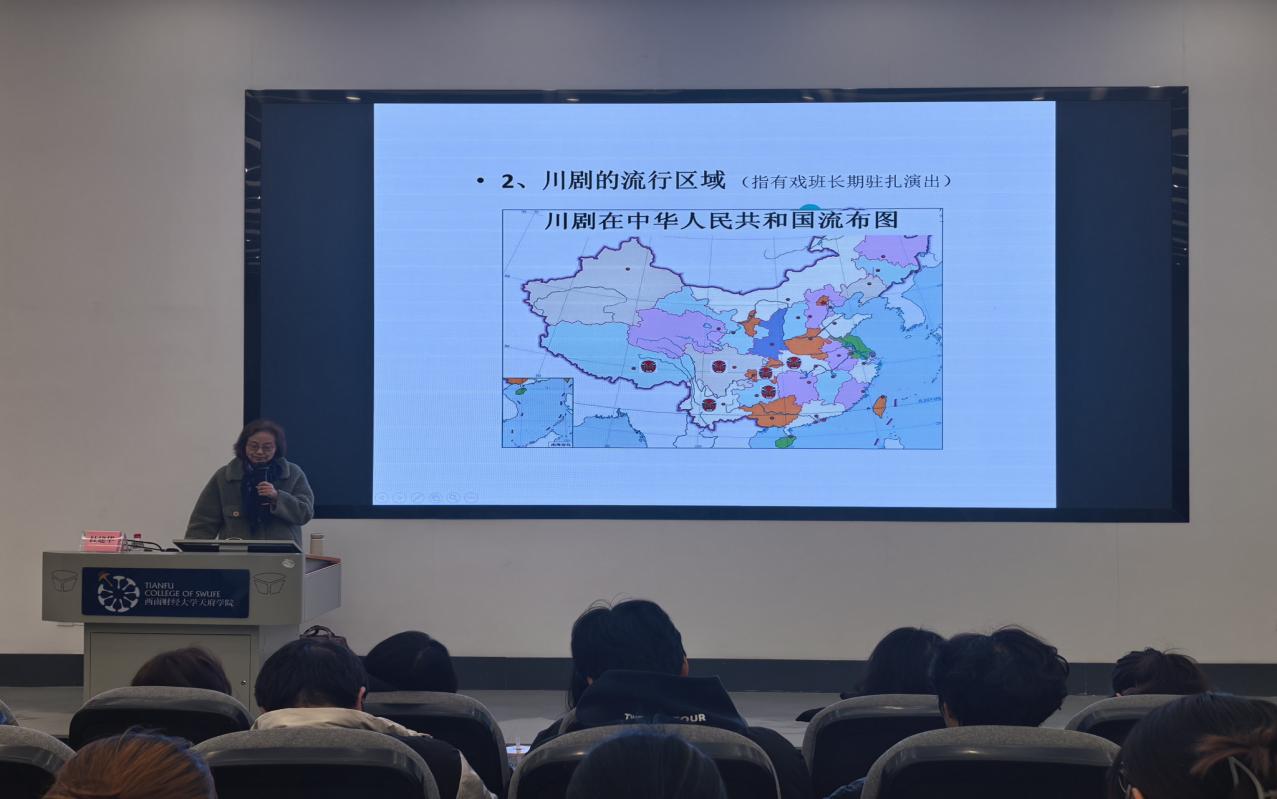 为深入推进中华优秀传统文化传承发展、丰富大学生美育教育实践、搭建川剧艺术交流与传播的优质平台,由西南财经大学天府学院联合德阳市罗江区文旅局于12月18日至19日在学校开展了“川剧进校园·薪火永相传”大学生美育教育暨川剧文化传承季系列讲座,本次系列讲座汇聚业界知名专家学者,以多元视角解读川剧艺术魅力,助力天府学子们感受传统文化精髓,推动川剧艺术在校园落地生根、薪火相传,此次活动为全校师生带来了一场兼具文学深度、实践价值与文化温度的思想盛宴,现场氛围热烈,反响热烈。