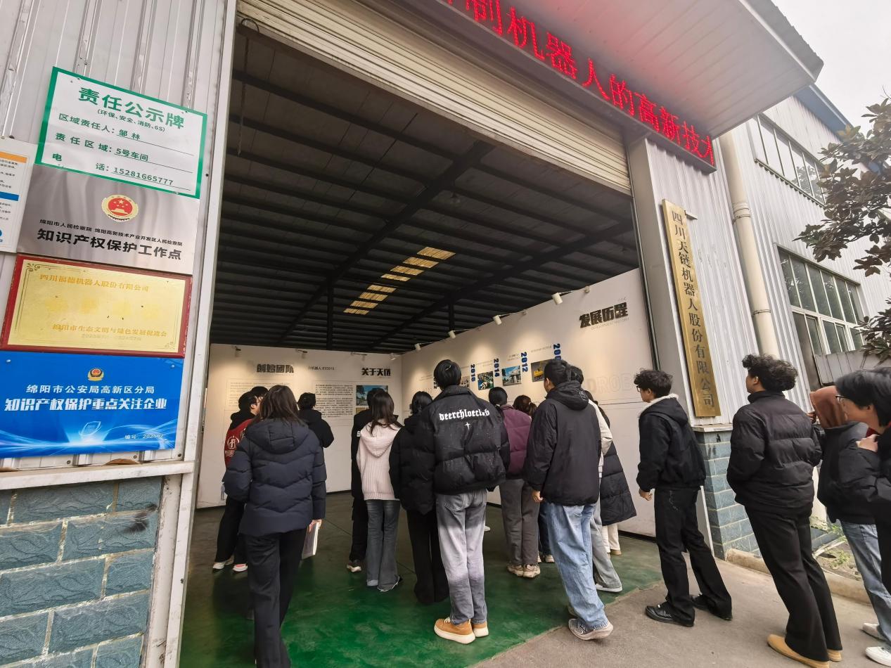 为推动产教融合落地,让专业学习与产业实践深度接轨,12月26日,智能科技学院2025级创新班机器人工程专业的同学走进四川天链机器人股份有限公司开展参观学习活动。同学们循着企业技术发展脉络,从发展历程到核心技术,从零部件研发到整机装配,全方位沉浸式感受机器人产业的创新活力与工业魅力。