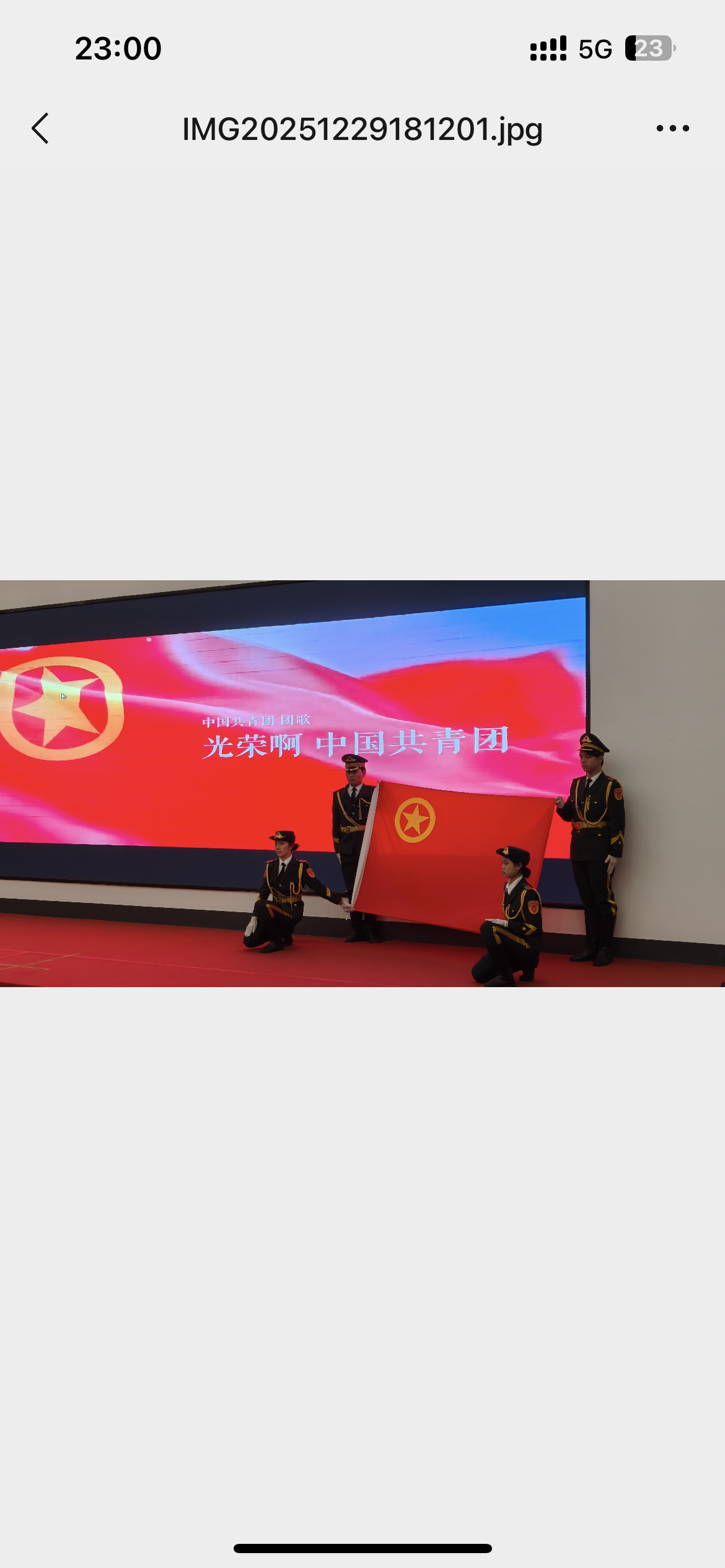 大会伊始,全体参会人员起立,国旗护卫队成员庄重护送共青团团旗,《光荣啊,中国共青团》的旋律在报告厅内响起。学子们以铿锵有力的歌声,展现出共青团员的青春朝气与责任担当,为本次总结大会营造了庄严而热烈的氛围。
