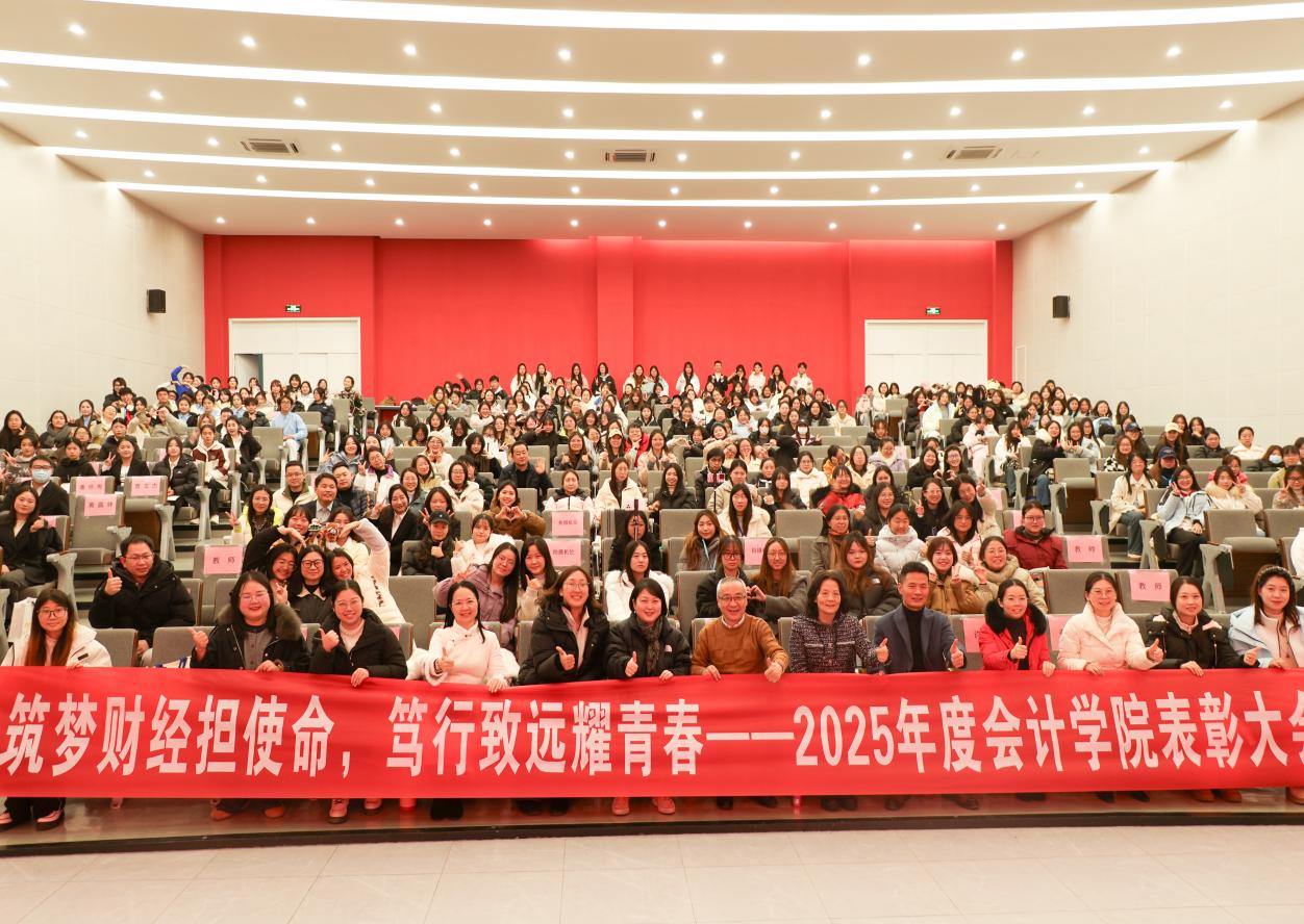 最终,大会在温馨感人的氛围中圆满落下帷幕。此次表彰大会不仅是对会计学院2025年育人成果的集中展示,更是一次凝聚人心、鼓舞士气的动员大会。未来,会计学院将继续坚守育人初心、勇担时代使命,以更加昂扬的姿态、更加务实的作风,培育更多高素质新财经人才,在高质量发展的道路上砥砺前行,绽放更耀眼的光芒!