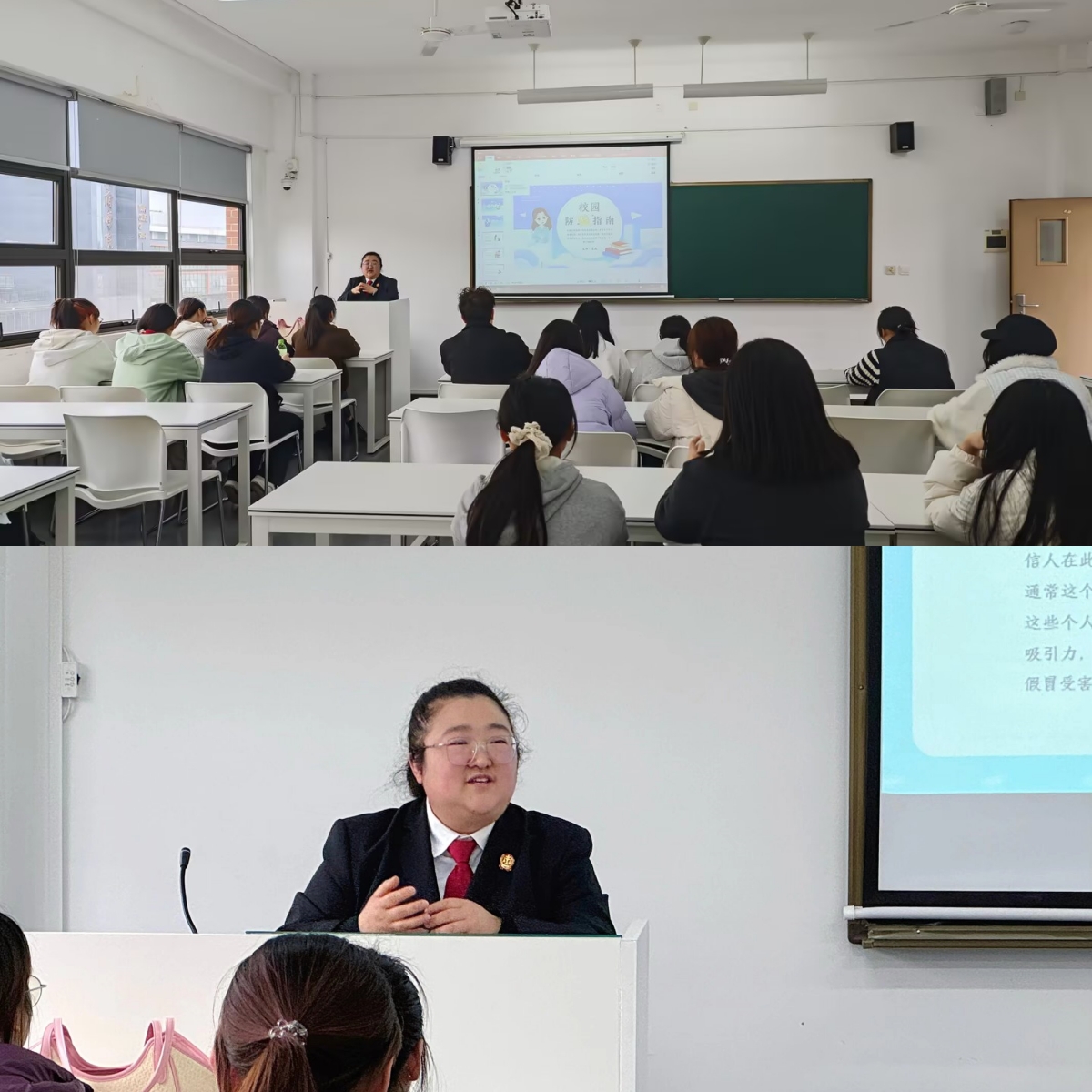 为深入贯彻落实全国两会提出的关于加强法治宣传教育、建设更高水平平安中国的精神要求,切实提升大学生防范电信网络诈骗的意识和能力,扣好新学期的“第一粒法治纽扣”,3月12日,西南财经大学天府学院德阳校区第一学生社区在教学楼B405开展“开学第一课——青春无诈,校园有法”主题普法讲座。活动特邀德阳市罗江区人民法院司法一线巾帼干警袁文担任主讲人,德阳校区学生积极参与本次普法学习。