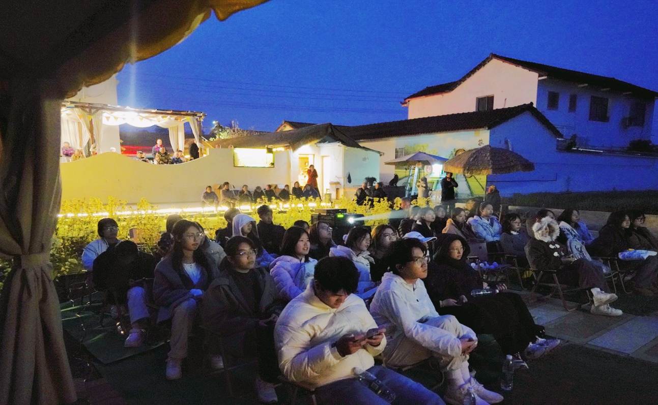 活动现场被盛放的油菜花田环绕,30名天府学子与当地村民一同观影,气氛温馨而热烈。《万里归途》讲述外交人员在战火中坚守使命、带同胞平安归国的感人故事。观众们全神贯注,许多情节引发强烈共鸣。观影过程中,学子与村民自然交流,既拉近了彼此距离,也在春日美景中共同感悟家国情怀。