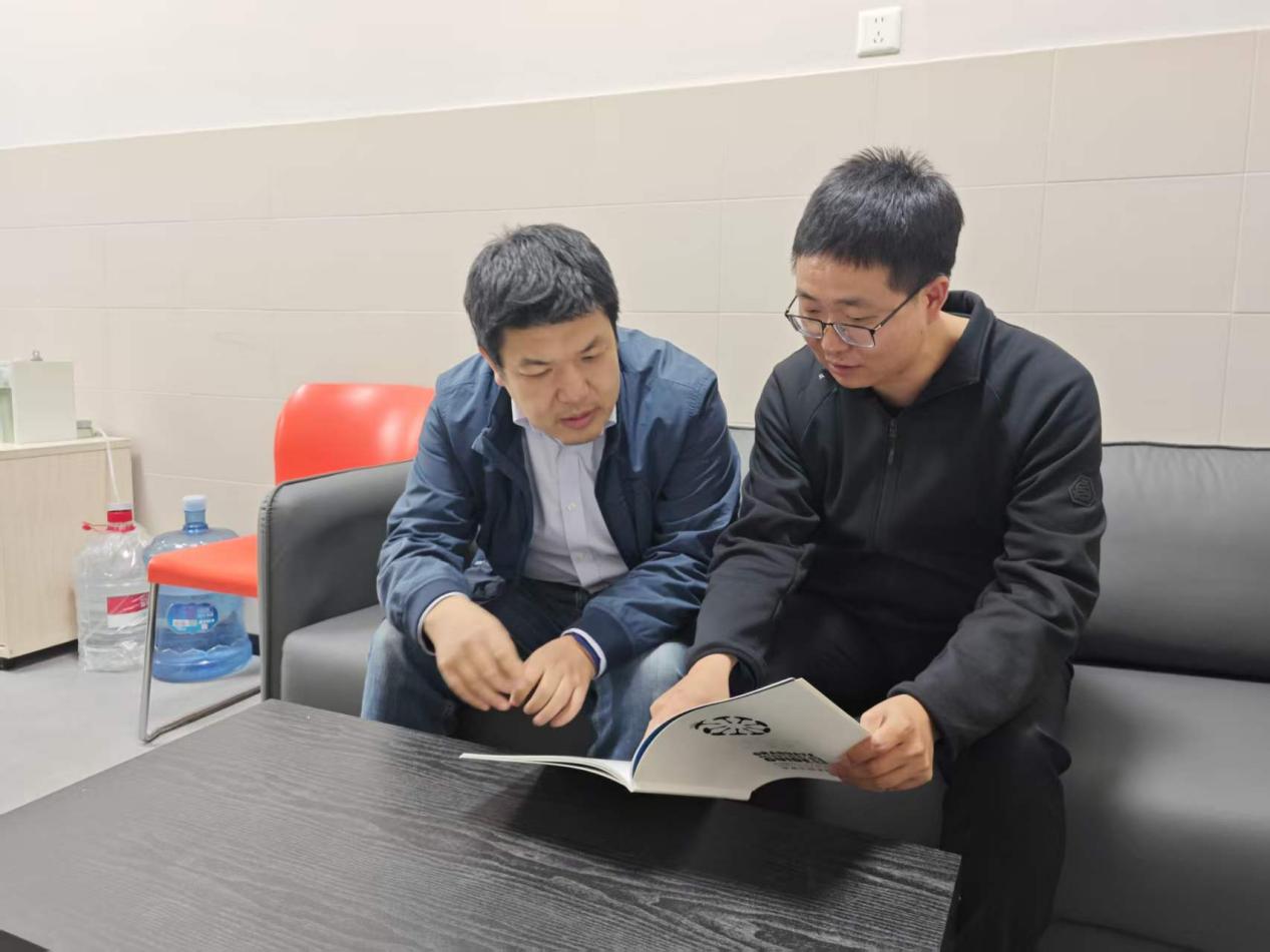 校友张财华与校友工作处副处长周淼进行交流