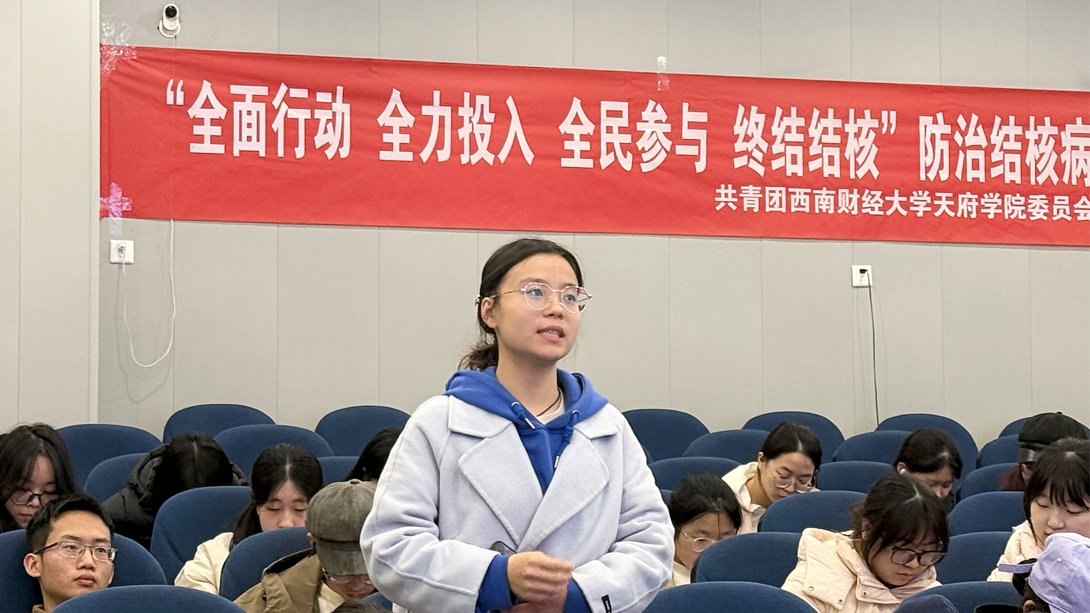 此次结核病预防公益讲座圆满结束,通过专题宣讲、宣传片观看及互动问答,同学们系统学习了疾病防控知识,有效提升了自我防护能力,今后大家将把健康知识融入日常,共同守护安全、健康的校园生活。西南财经大学天府学院也将继续组织安全科普活动为广大学子筑牢校园健康防线,助力学生们在求学征程中健康成长、全面发展。