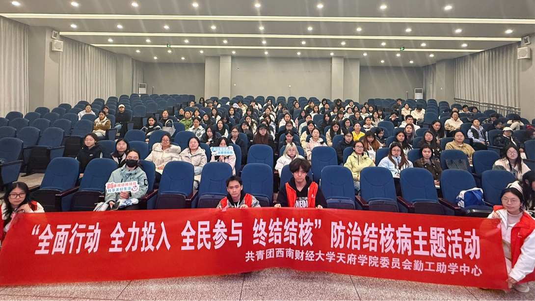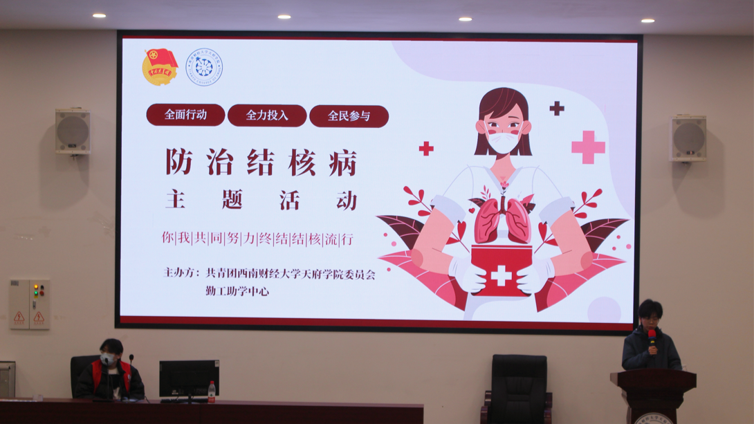 2026年3月24日是第31个“世界防治结核病日”,为切实保障师生身体健康,普及结核病防治核心知识,消除认知误区,提升校园传染病防控能力,共青团西南财经大学天府学院勤工助学中心于3月19日在西南财经大学天府学院成都校区(东区)238教室举办本次预防结核病公益讲座,引导师生树立科学防控理念,筑牢校园健康安全防线。