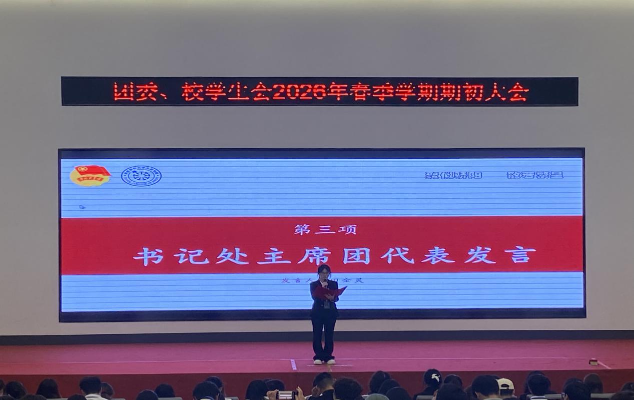 书记处学生副书记田金灵在发言中强调团委、校学生会既是服务学子的核心阵地,也是青年践行“挺膺担当”、实现自我成长的实践平台。她要求全体成员把每一项工作做细做实,在整改中提升服务质量,在落实中彰显组织价值,在协同中锤炼自身能力,以青春之力扛起时代使命。