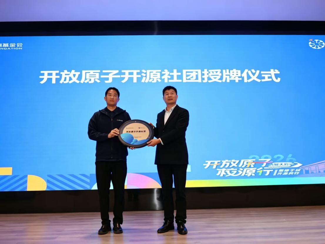 随后进入开放原子社团的授牌仪式环节。此次社团的建立标志着西南财经大学天府学院在开源人才培养领域迈出了实质性的一步,为师生搭建起一个集学习、实践、交流于一体的开源实践平台。社团的成立为开源生态注入了新鲜血液,进一步推动高校与产业、社区的协同联动,助力开源文化在校园内生根发芽,为区域数字经济发展培育更多高素质的开源人才后备军。