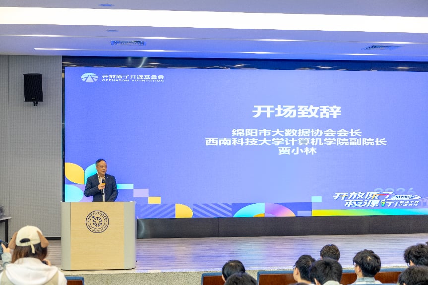 绵阳市大数据协会会长贾小林指出,开源是数字时代协同创新的基石,对技术发展、产业升级及人才培养具有重要推动作用。他赞赏学院成立开源社团与孵化中心的举措,认为这是将开源融入人才培养的关键一步。协会将发挥桥梁作用,支持高校对接开源生态,并期待与基金会、企业、高校携手合作,推动本地开源技术普及、社区建设与人才培养,助力数字产业发展。