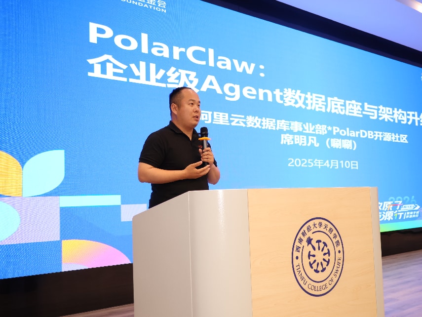 阿里云PolarDB社区负责人席明凡讨论AI驱动下的软件范式,分析智能体从对话交互进化为“数字员工”。他指出,智能体是未来人机交互的主要形态,介绍阿里云开源智能体框架与PolarDB数据库的结合。强调数据底座对智能体的重要性,融合催生新开发模式,要求开发者理解AI和数据系统。