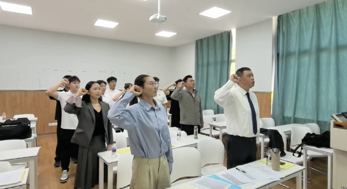 答辩正式开始前,学院组织全体毕业生进行庄严宣誓。学子们郑重承诺,将恪守学术诚信、坚守学术规范,以真实严谨、认真负责的态度完成答辩全过程,以原创求实之心对待学术研究,展现体育学院学生优良学风与道德素养。宣誓环节不仅强化了学生的学术诚信意识,更为整场答辩奠定严肃、公正、规范的基调。