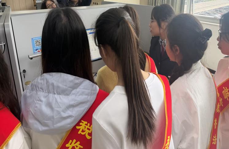理论讲解结束后,工作人员带领学生走进办税服务大厅,开展实操教学,手把手指导学生通过网上办税平台完成相关涉税操作,让学生直观感受“智慧办税”的便捷高效,切实将理论知识与实践操作相结合。