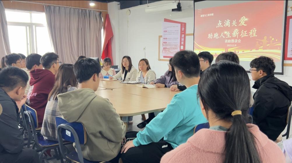 为扎实推进学校资助政策开展,持续做好精准育人,倾听同学们的心声,帮助受助学生解决实际问题。11月8日中午,建筑与工程学院资助管理中心和学院团总支勤工助学分中心在建工楼开展了“点滴关爱,助跑人生新征程”资助恳谈会活动,本次座谈会邀请了建筑与工程学院党总支副书记吴敏、副院长范香、资助工作负责人齐玲玲和各班受助同学代表共同参加。