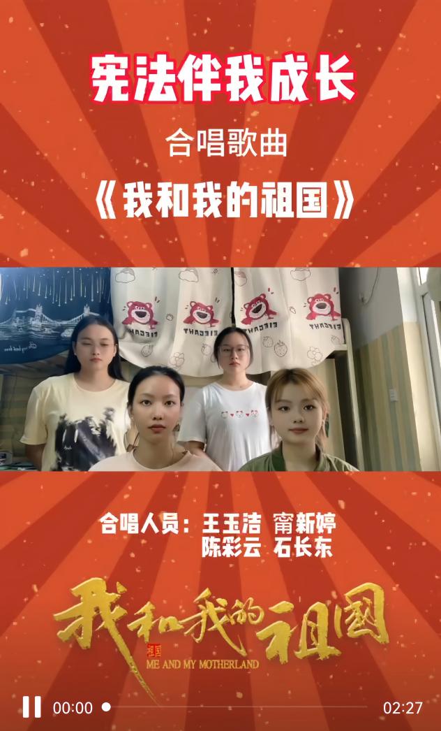 本次活动要求同学们组队录制合唱视频并提交给工作人员,再由活动评议小组分别对每一个作品进行评分,最后根据分数进行排名,确定奖项。合唱比赛视频中同学们展现出了积极向上的精神面貌。在最后的比赛环节中,评议小组与同学们进行了线上交流问答,参赛同学展示了自己对宪法相关知识的了解和应用能力。
