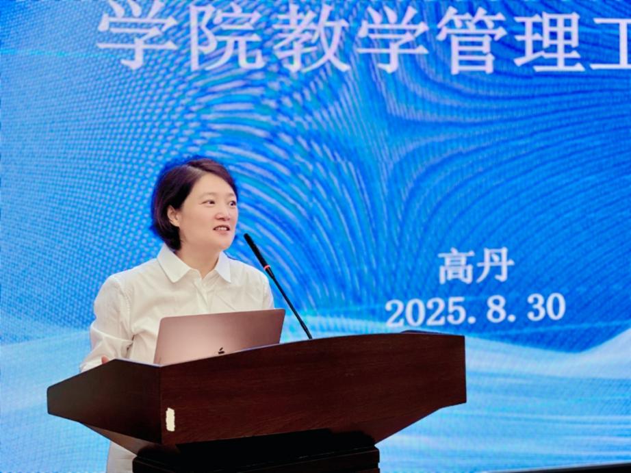 高丹详细阐述了2025年秋季学期教学管理工作的总体目标与核心任务。她指出,本学期学院将以“质量提升”为核心,通过精细化管理实现教学成果的显性化和学生成长的可量化。围绕这一目标,学院制定了五大板块、十五项具体任务,涵盖教育思想大讨论、竞赛评优、AI教改、教学规范及学风建设等多个方面。高丹还强调了时间节点与责任人的双重锁定机制,确保各项任务能够落地实施,形成管理闭环。