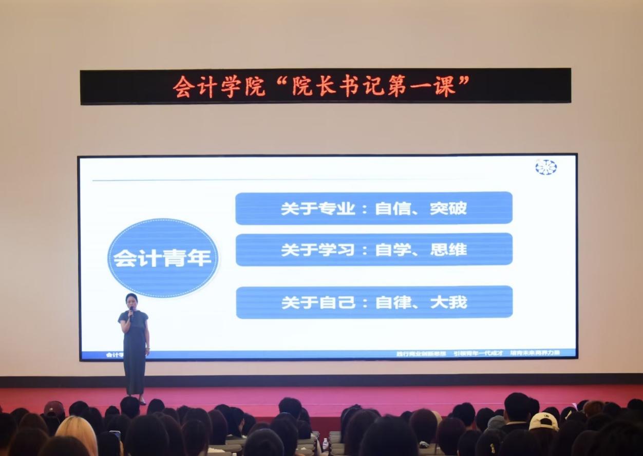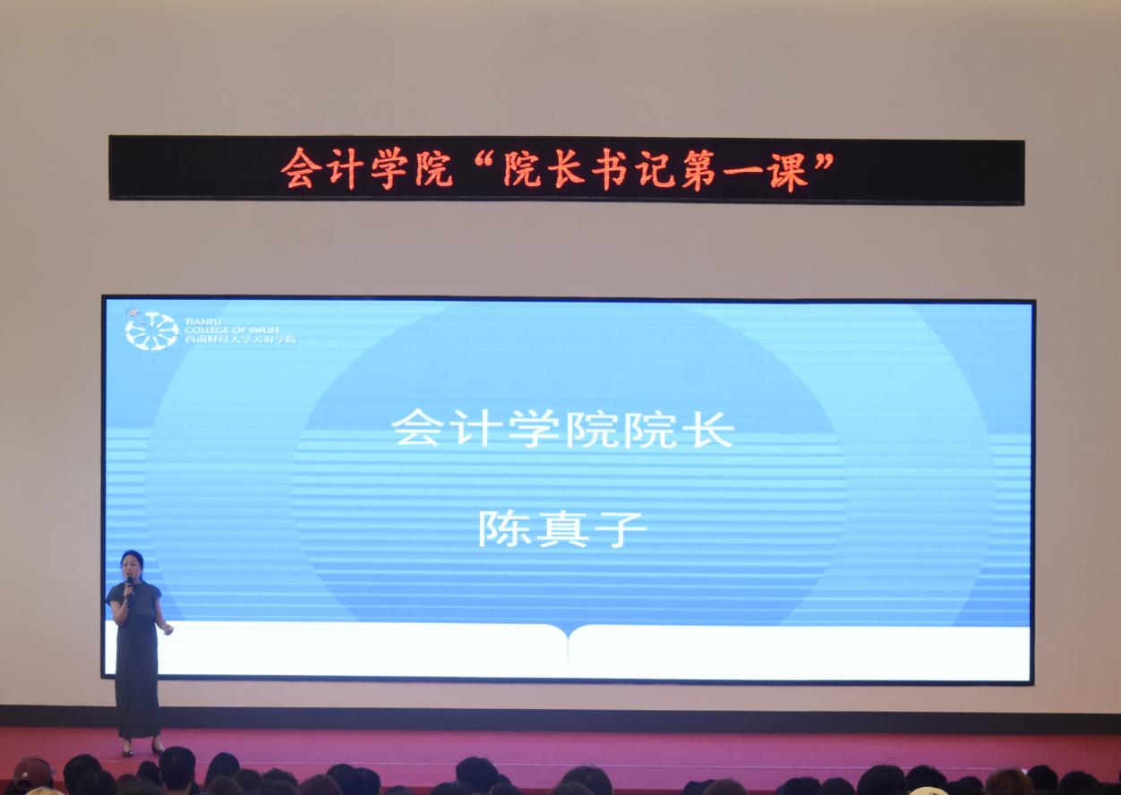 9月9日和11日,西南财经大学天府学院会计学院 “院长书记第一课” 正式开讲。会计学院院长陈真子、学院分党委副书记夏丹走进课堂,向全体大一新生致以热烈欢迎,并围绕“专业成长”“学习方法”“自我塑造”三大维度,与新生们展开深度交流,为初入大学的学子们搭建起认知专业、规划未来的清晰框架。