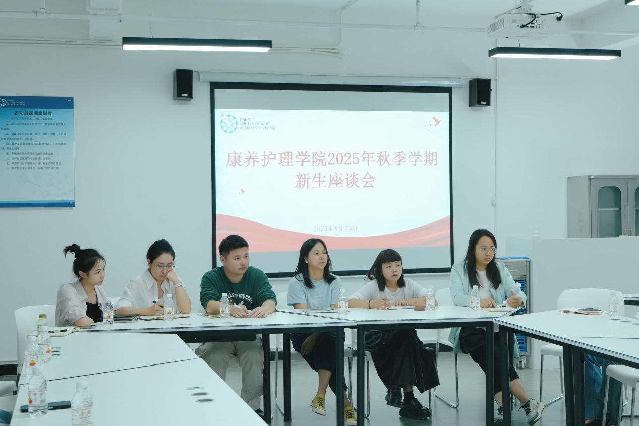 为畅通师生沟通渠道,精准对接新生需求,9月23日,西南财经大学天府学院康养护理学院在德阳校区召开2025年秋季学期新生座谈会。康养护理学院副院长梅超南、分党委副书记任讷、学生科副科长贾林及部分辅导员与新生代表共同参会。