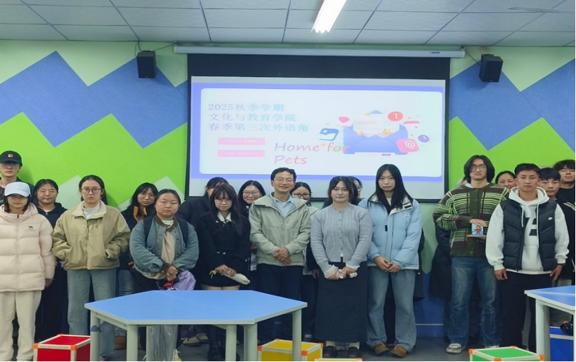 为给学生提供语言交流实践平台,提升外语口语能力,增进对外语文化的了解,文化与教育学院E-star Club英语社携手文化与教育学院学生第二社区,于11月5日在三教声乐室顺利开展了以“Home For Pets ”为主题的2025年秋季学期第九周外语角活动。此次活动由张芹祎同学主持,邀请到文化与教育学院教师郭家宏、蓝金燕担任现场嘉宾。