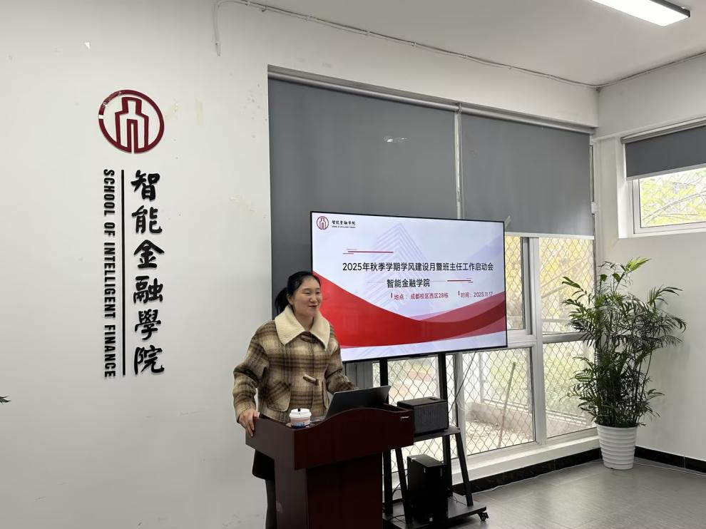 为扎实推进班级建设与学风培育,明确班主任工作方向与重点,11月17日,西南财经大学天府学院智能金融学院在成都校区(西区)28栋1楼开展2025年秋季学期学风建设月暨班主任工作启动会。学院分党委副书记罗婷、全体班主任及辅导员共同参加,学院学生工作办公室主任郑艳主持会议。