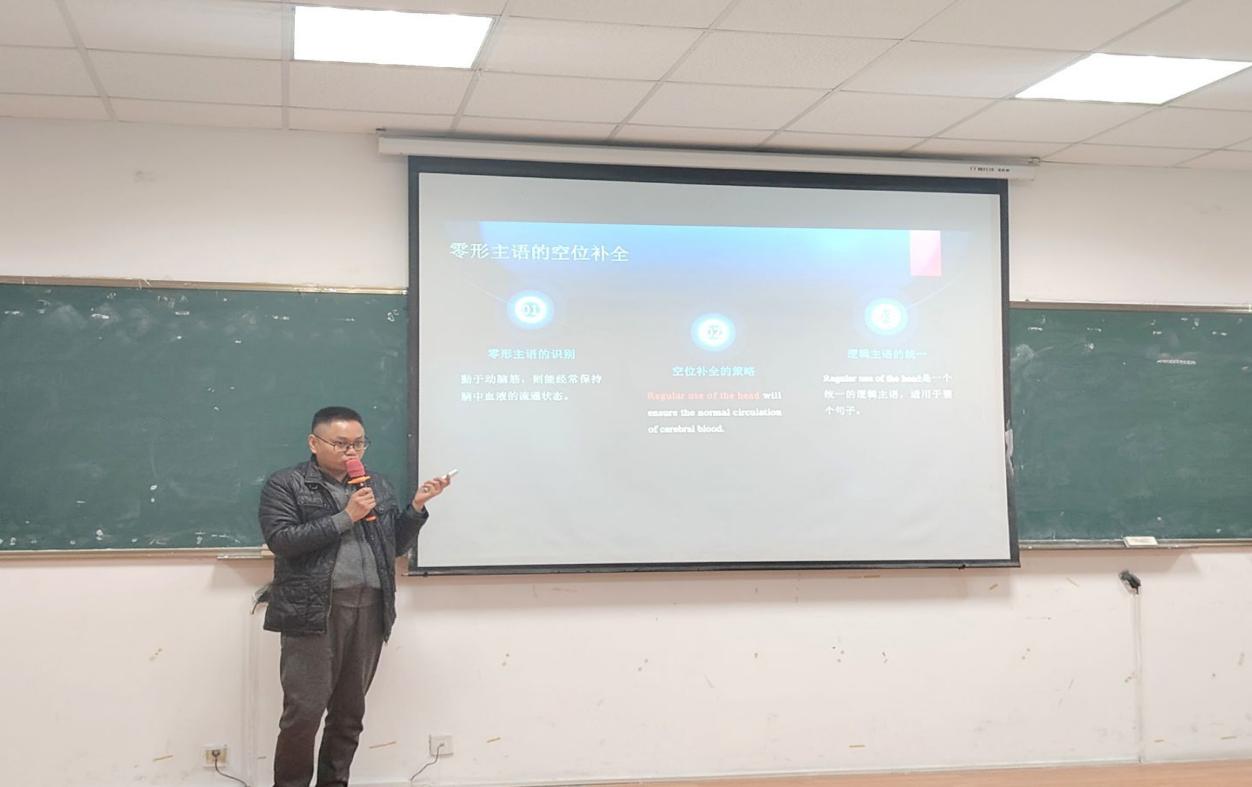 为帮助同学们深化对翻译的认知、提升跨语言实践能力,文化与教育学院学生会学术部携手文化与教育学院学生第二社区,于11月26日晚在二教2406教室举办了面向文化与教育学院全体学生的“汉英主语·话题错位”的专题讲座。本次讲座由文化与教育学院学生杨宇轩主持,文化与教育学院舒洪成老师领衔,文化与教育学院综合事务办公室副主任郑旭、团学彭金艳老师出席并分享。
