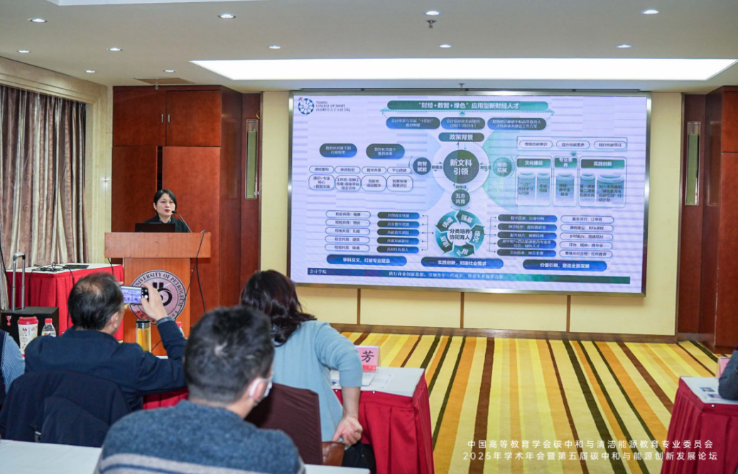当日下午,在“双碳实践育人案例交流”分会场,陈真子作了题为《构建面向“双碳”战略的“三维一体”人才培养体系的天府实践》的专题案例分享。她系统阐述了会计学院在服务国家“双碳”战略目标过程中形成的人才培养创新体系,生动展示了学院在深化产教融合、主动对接国家战略需求方面的系统探索与阶段性成效,引发了与会代表的广泛共鸣。
