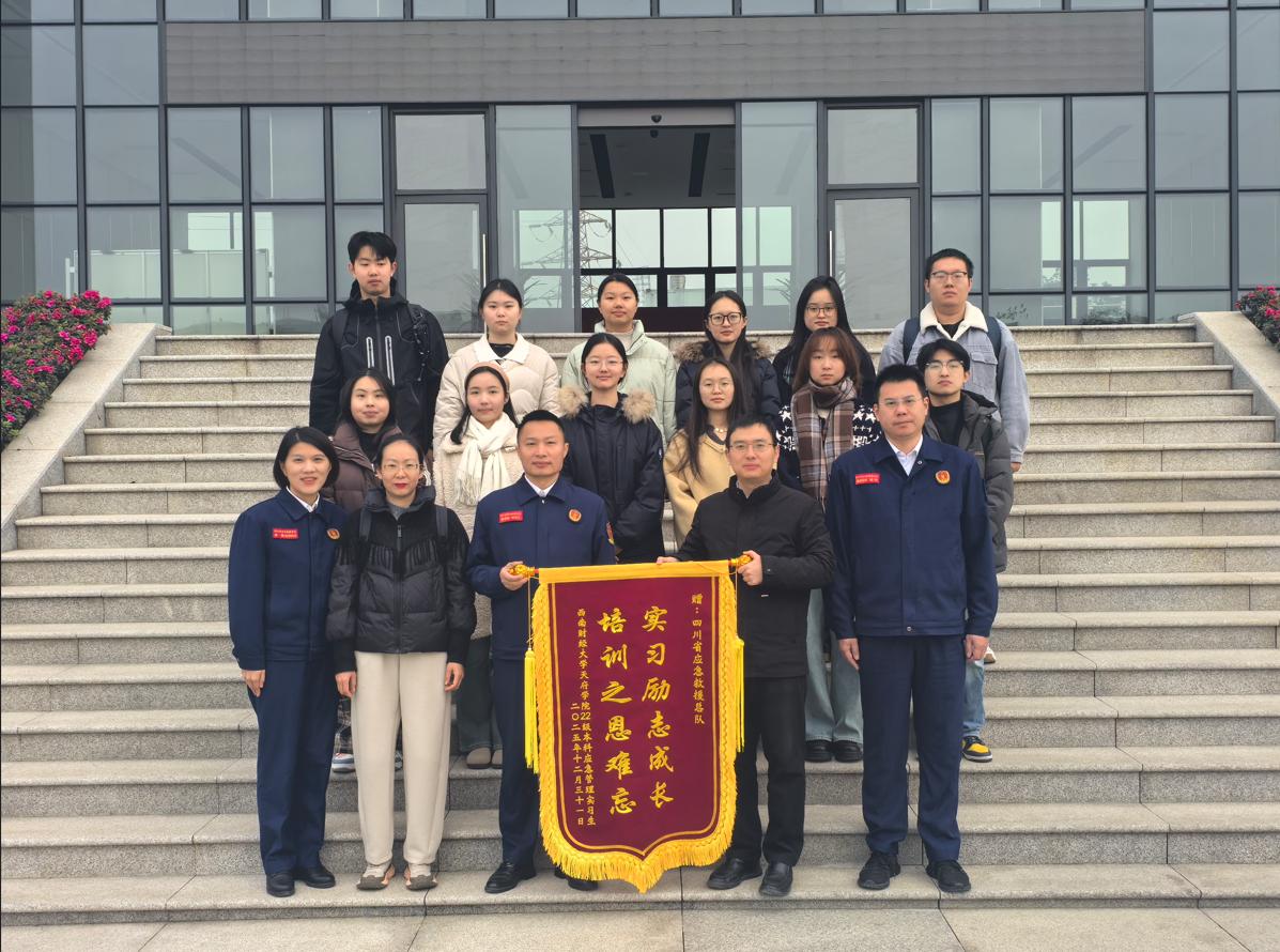 近日,继续教育学院副院长佘脊、应急管理专业负责人郑婧带领应急管理专业大四年级12名实习学生,赴四川省应急救援总队赠送锦旗,表达对总队实习期间指导与支持的感谢。四川省应急救援总队副书记刘长江、副总队长陈朴及综合救援部主任李娟参与接待,双方就应急人才培养合作进行交流。
