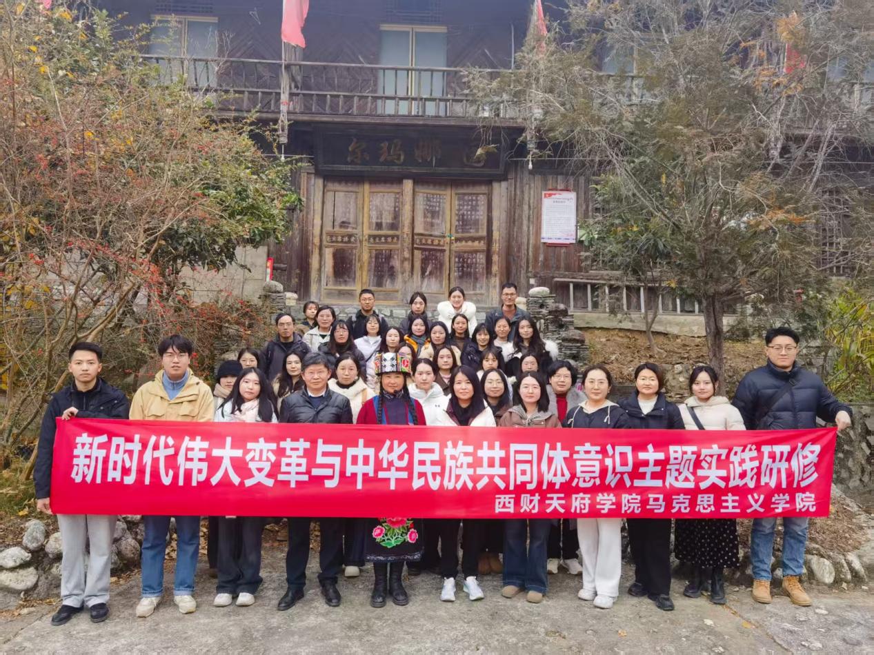 2025年12月30日,马克思主义学院赴绵阳市平武县走马羌寨,开展“新时代伟大变革与中华民族共同体意识”主题实践研修活动。本次活动由学院院长丁灵芝带队,智能科技学院与马克思主义学院40余名教师参加,旨在通过实地调研、文化体验与专题研讨,深化对新时代伟大变革与中华民族共同体意识的理解,提升思政课教学的实践性与时代性。