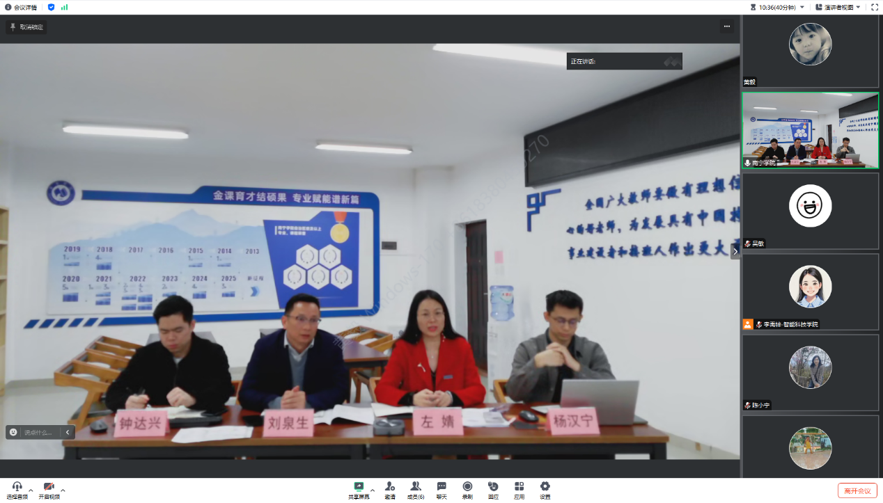 为促进校际合作与学科交流,推动工科人才培养模式创新,2026年1月14日,西南财经大学天府学院与南宁学院就工科学院短期交换生项目召开专题线上交流会议,两校相关学院领导及教师代表齐聚“云端”,共商合作发展路径。学校智能科技学院院长徐鸿雁、工程与材料学院常务副院长范香、智能科技学院分党委书记常荣、工程与材料学院分党委书记吴敏及两学院相关领导及教师代表、南宁学院教务处处长左婧、华为产业学院院长刘泉生、教务处副处长杨汉宁及学籍科干事钟达兴等领导共同出席会议。此次会议聚焦工科学院短期交换生项目合作,旨在打破校际壁垒,整合优质教育资源,为两校工科学生搭建跨校学习、实践的平台。