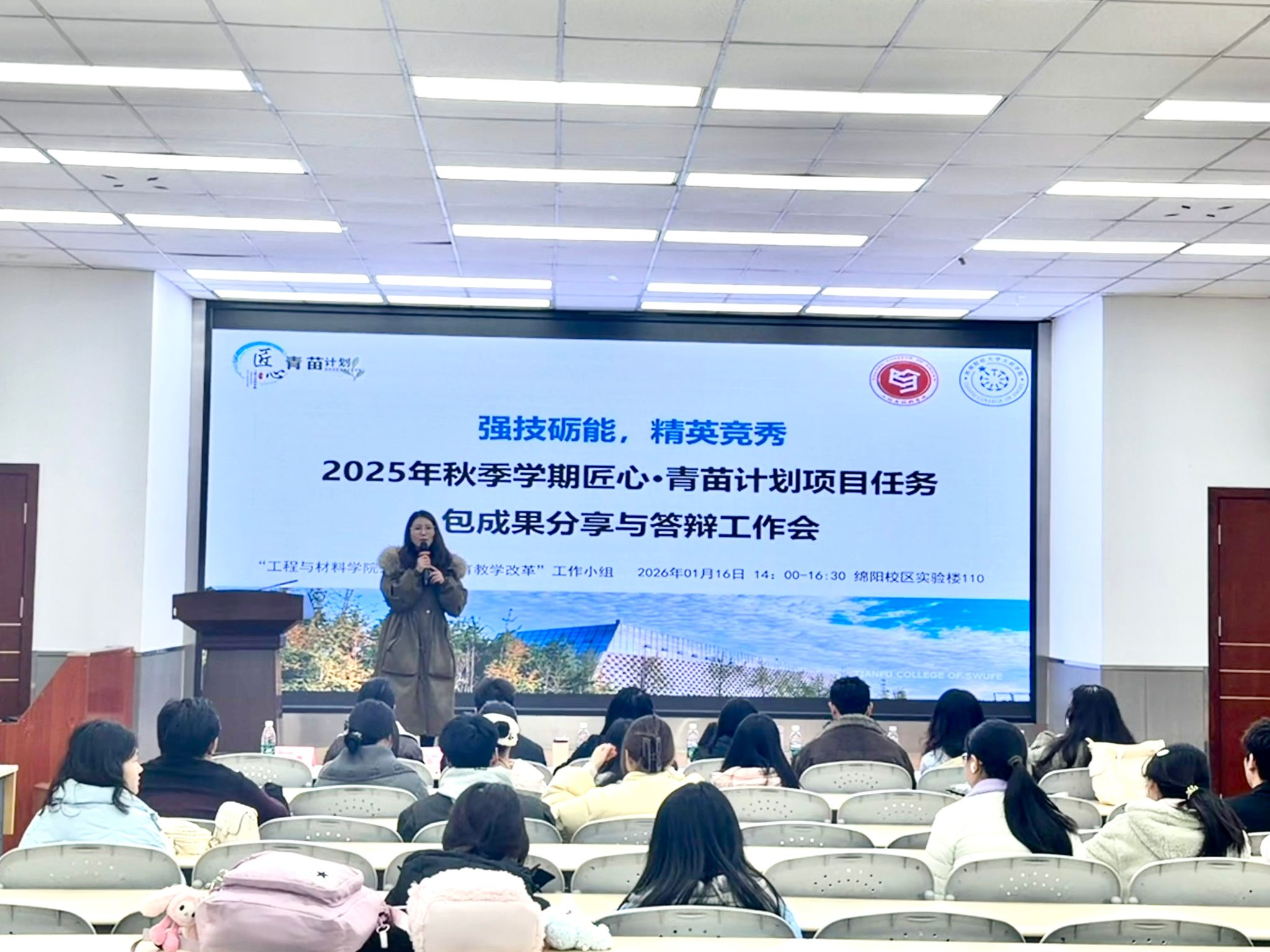 工程与材料学院近日在实验楼110举办“强技砺能,精英竞秀”为主题的2025年秋季学期匠心·青苗计划项目任务包成果分享与答辩工作会。工程与材料学院常务副院长范香、院长助理兼电气工程系主任宋平、院长助理范璐瑶、智能建造系副主任陈倩和低空经济系教室朱凌霜、电气工程系教师王健、匠心·青苗计划精英班班主任兼电气工程系副主任陈静,项目任务包导师陈鹏冲、刘果,以及2023级、2024级、2025级精英班学生代表共同参会。本次会议由陈静主持。