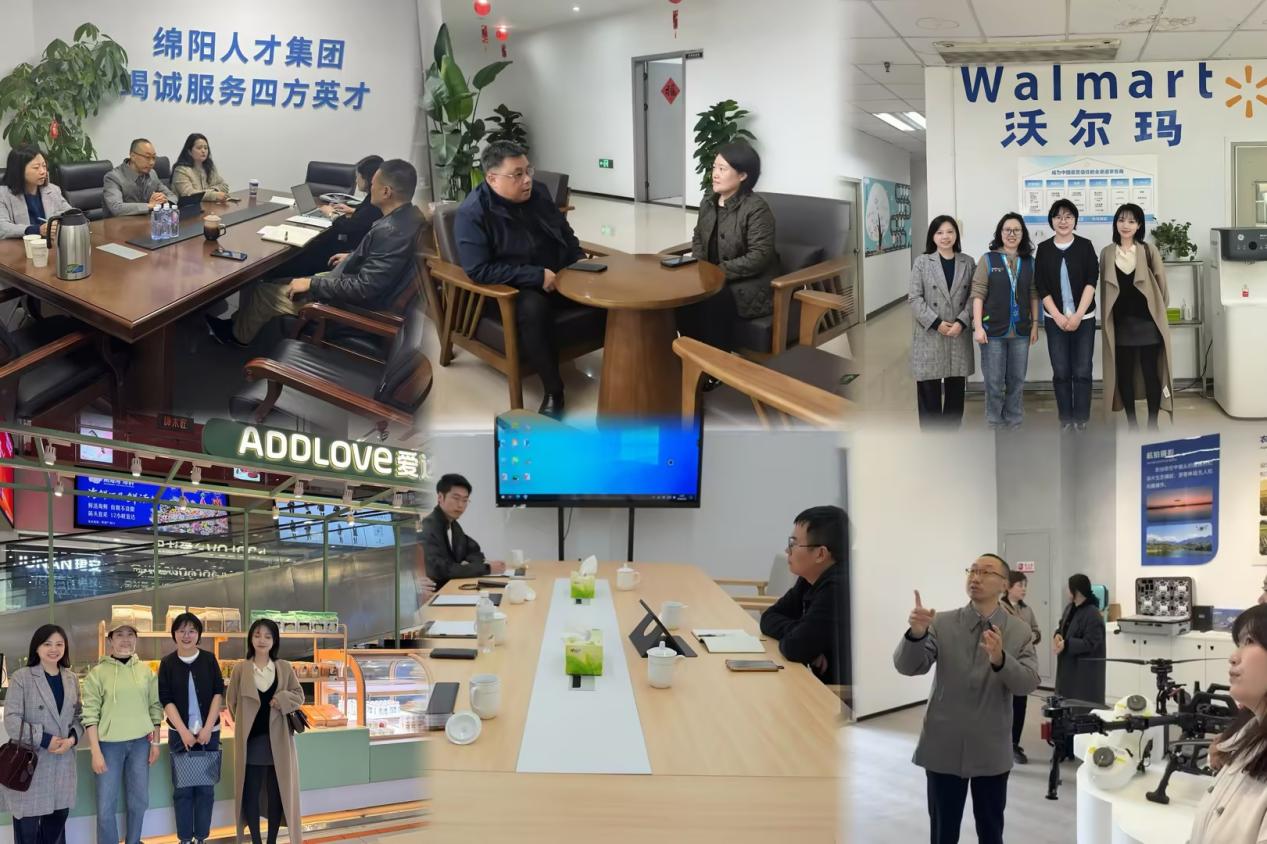 在学院领导的带领下,由学院系主任、专业负责人组成的走访团队,分别深入绵阳泓力职业培训学校(仙海区无人机培训基地)、绵阳科汇人才服务有限责任公司、四川爱米粒科技有限公司、三星堆开发建设有限公司、浙江中合人力资源管理有限公司、四川爱达乐食品有限责任公司、沃尔玛(四川)百货有限公司、绵阳市顺芯会计事务所、绵阳市川能电气安装工程公司、杭州具身智能体教育有限公司成都校区、成都新地播客新媒体有限公司等多家单位,开启了一场场深入的校企对话。