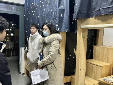 3月3日晚,学院党总支书记陈永清带领德阳校区全体辅导员深入学生宿舍,开展新学期第一次宿舍走访工作,全面检查宿舍安全、卫生情况,了解学生新学期生活状况,为学生带去关心和温暖。陈永清问候同学们的同时,了解他们在学习生活中遇到的问题,耐心为他们答疑解惑,提醒大家要劳逸结合,提高自我管理能力,关注自身的身心健康。辅导员认真核查宿舍人员变化情况,叮嘱宿舍成员要友爱互助,重视宿舍卫生,树立优良寝风,并尽快投入学习状态,适应新学期生活。